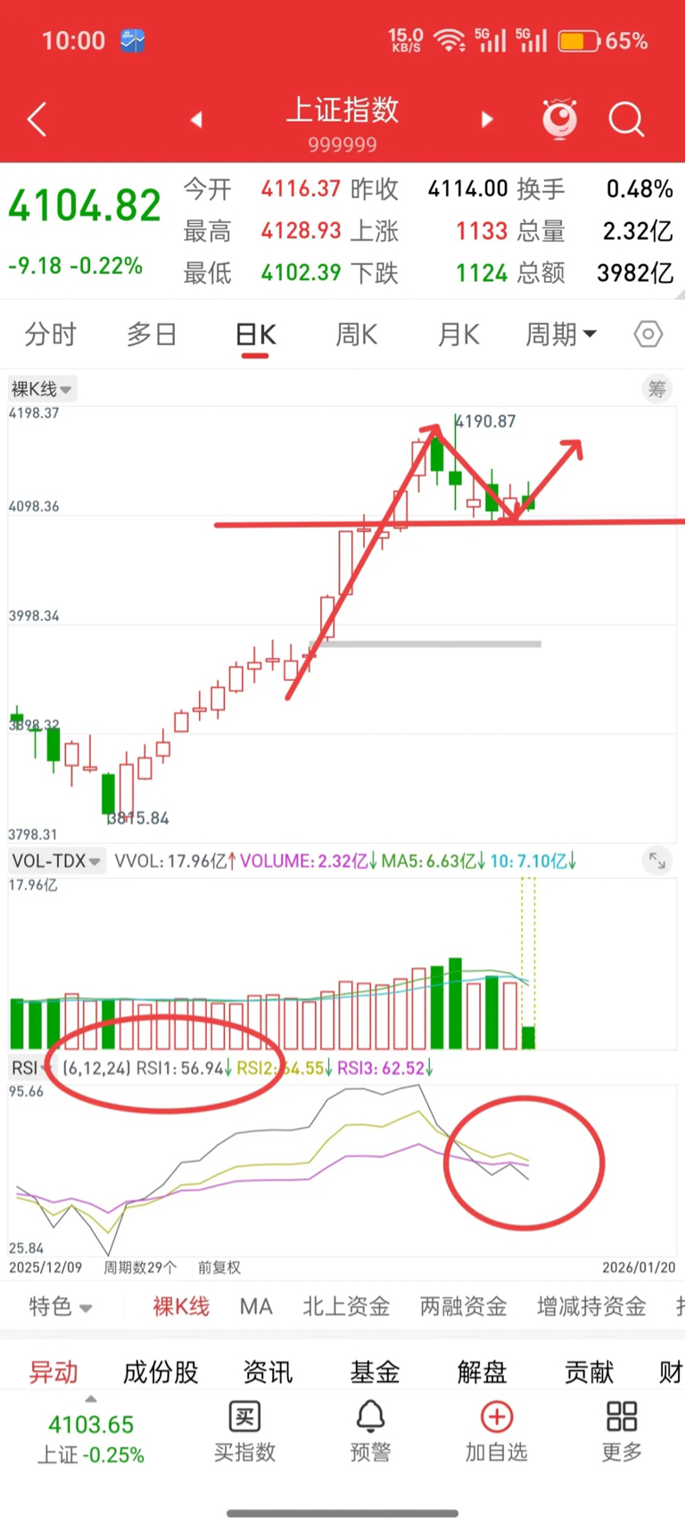4100下方机会大于风险,预计今天的低点不会低于昨天的低点。