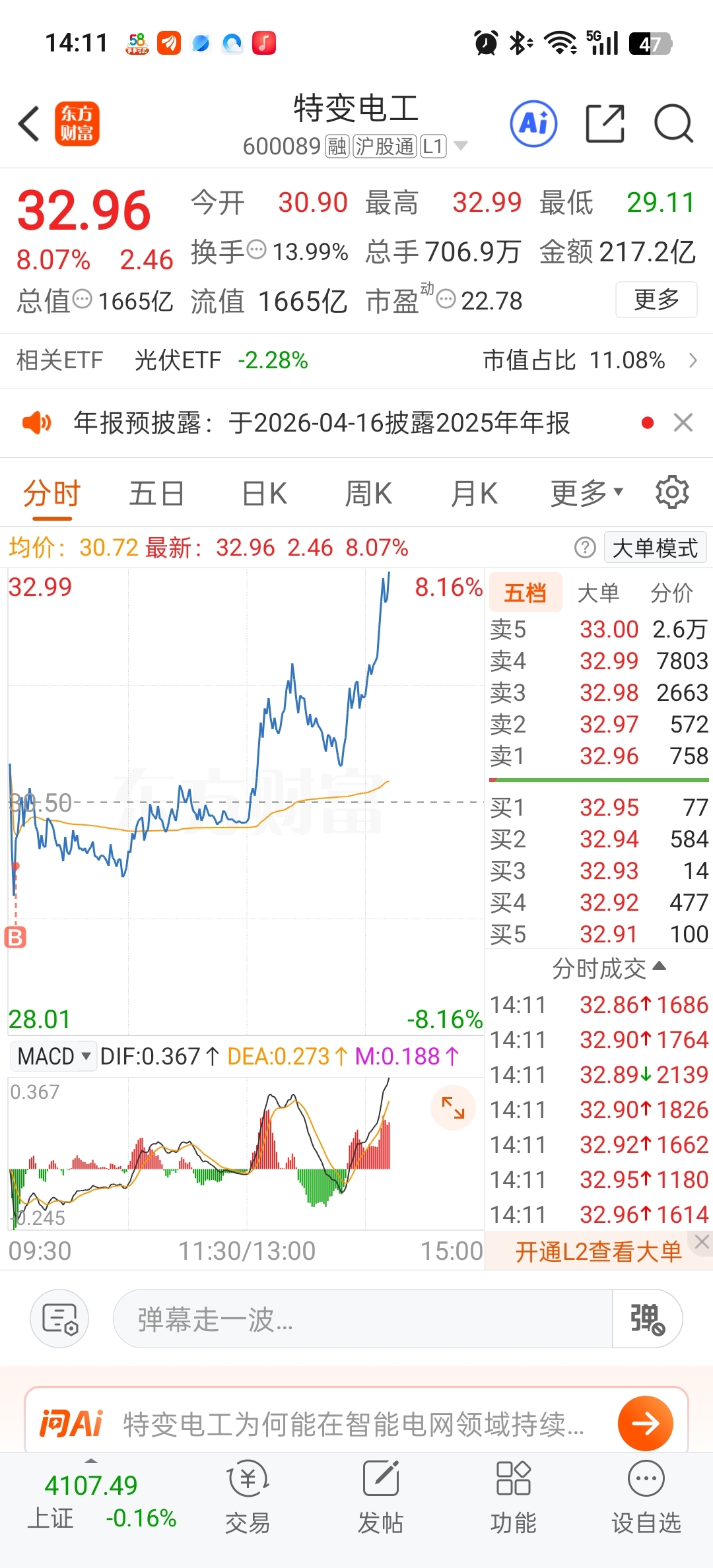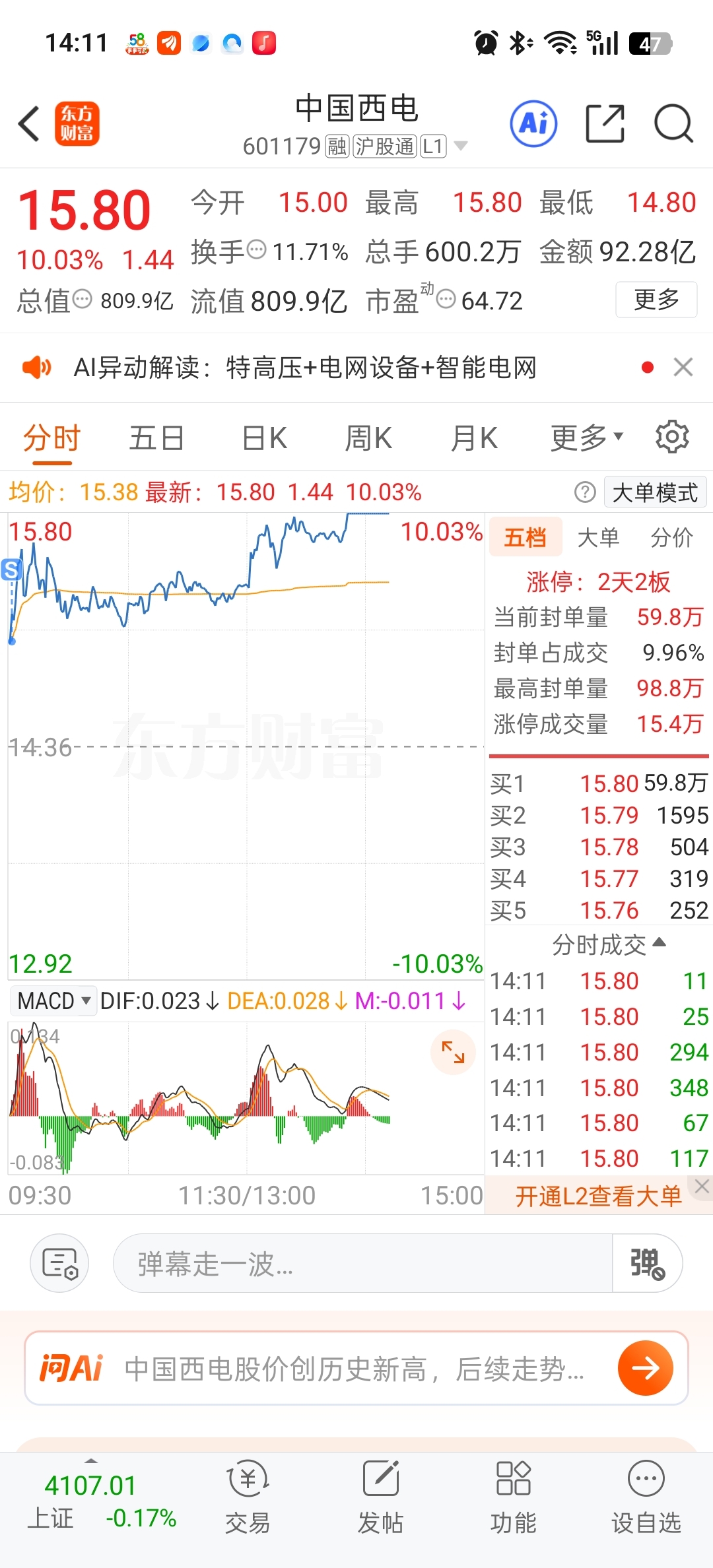我这么看好你,老板把西电出了,换你给个面子涨停吧。