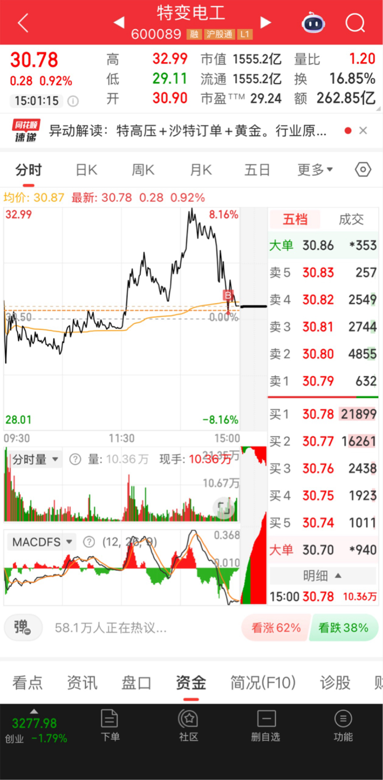 $特变电工(SH600089)$ 倒车接人,冲就完了,这波电网行情起码持续到月底