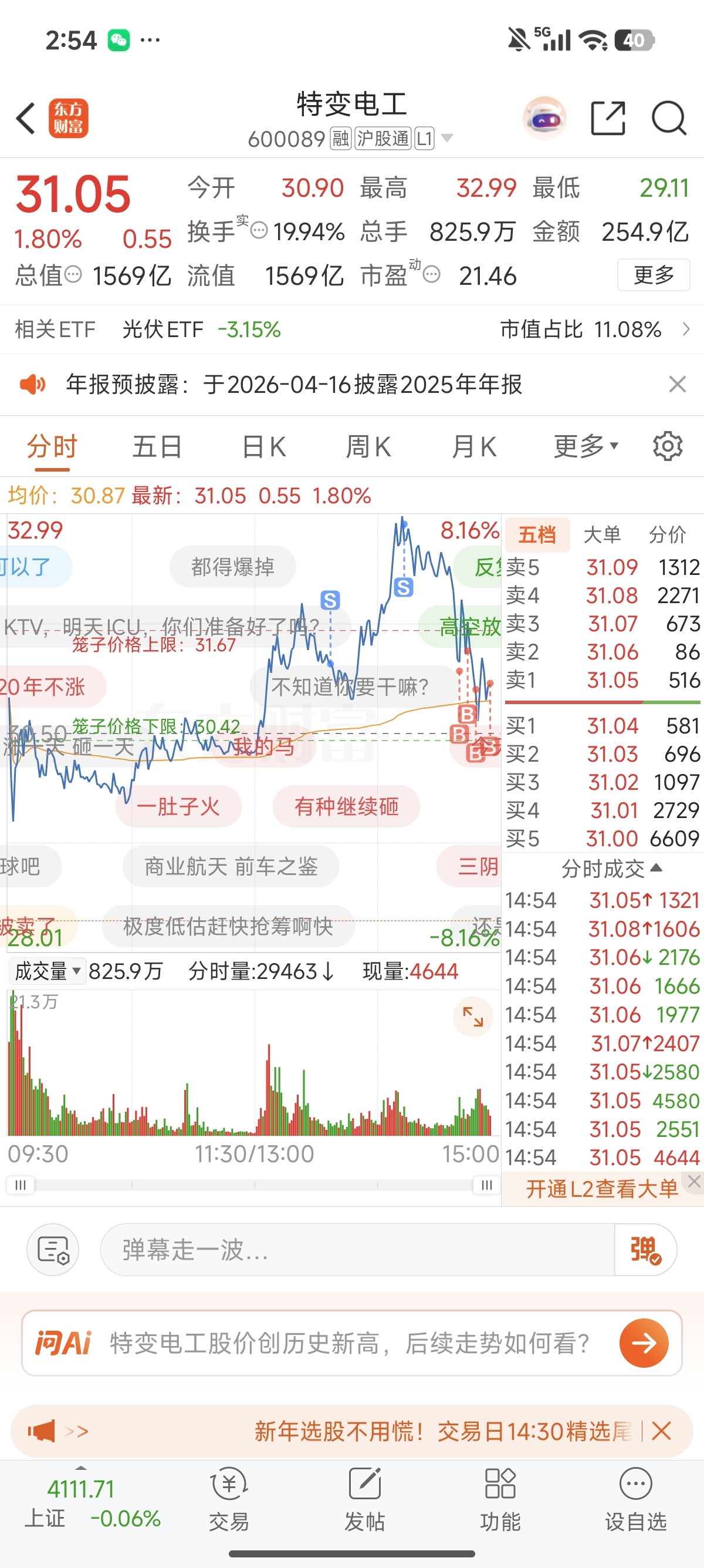 $特变电工(SH600089)$ 高位一键清仓,尾盘吸回半仓,明天水下给机会继续干。