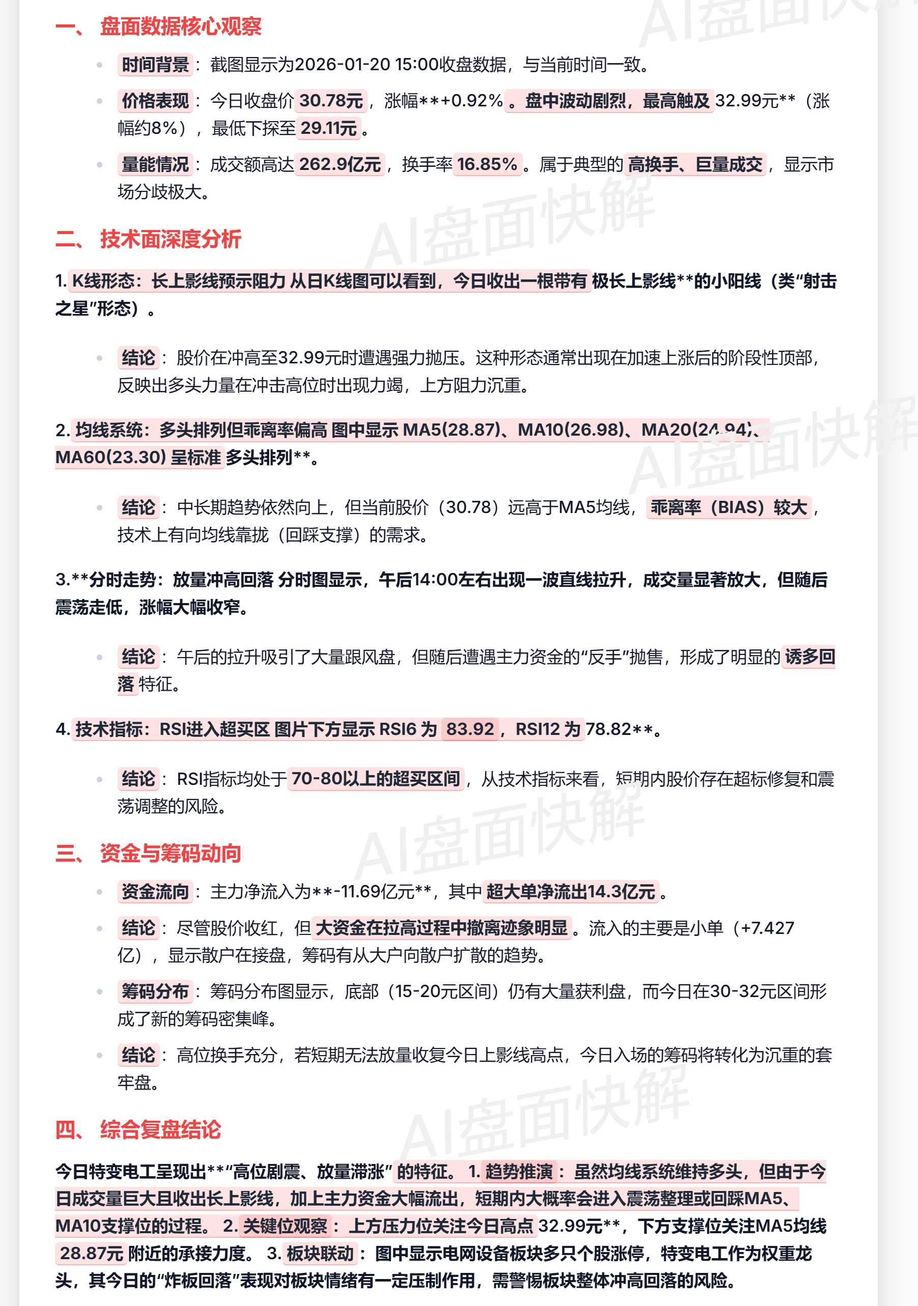 资金背离:尽管收红,但主力资金全天净流出达11.69亿元,其中超大单净流出高达14.3亿元。大资金在拉高过程中撤离迹象明显,今日入场的筹码更多转化为沉重的套牢盘。