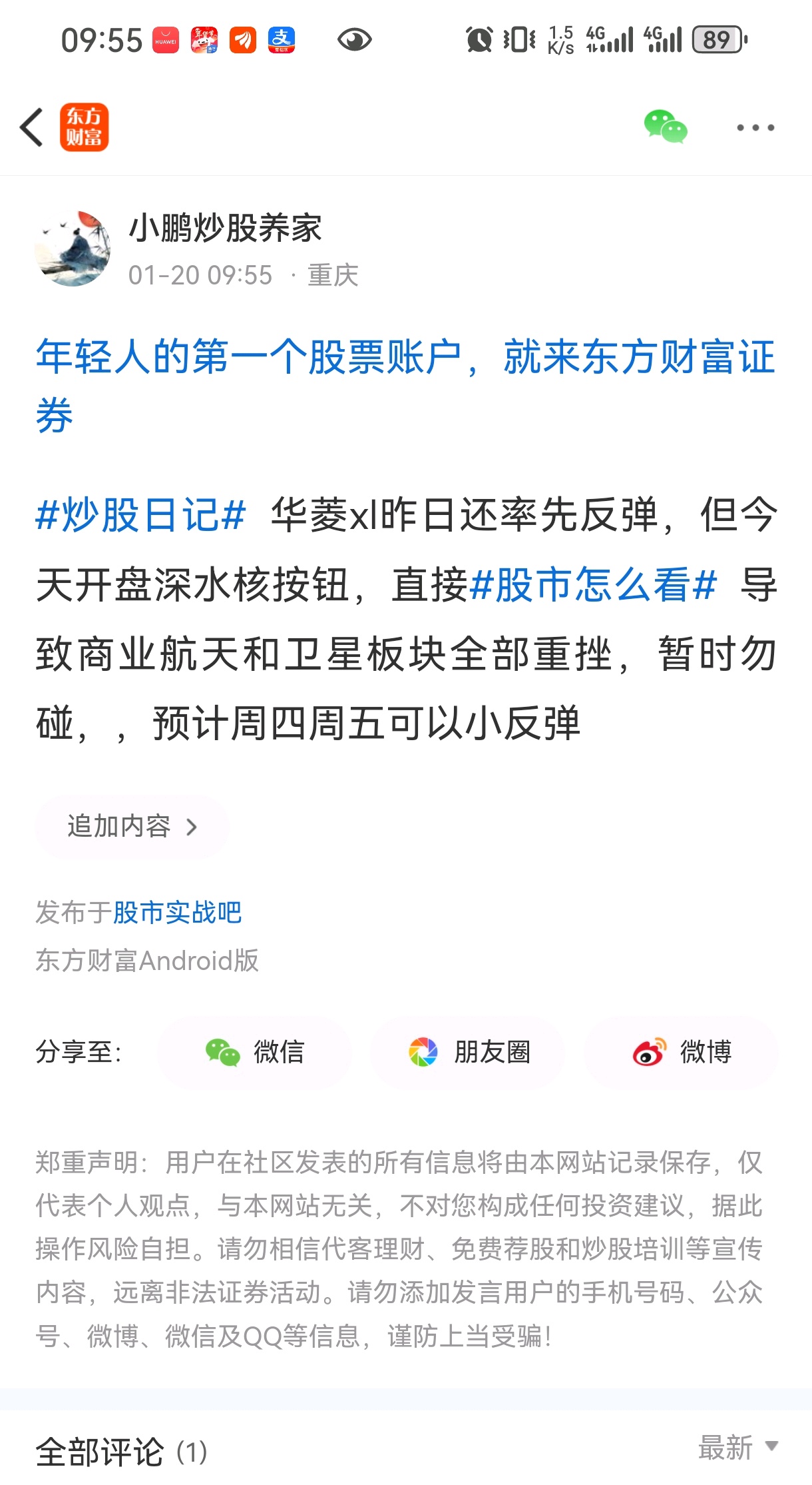 温馨提示: 1.根据《证券法》规定,禁止编造、传播虚假信息或者误导性信息,扰乱证券市场;2.用户在本社区发表的所有资料、言论等仅代表个人观点,与本网站立场无关,不对您构成任何投资建议。用户应基于自己的独立判断,自行决定证券投资并承担相应风险。《东方财富社区管理规定》