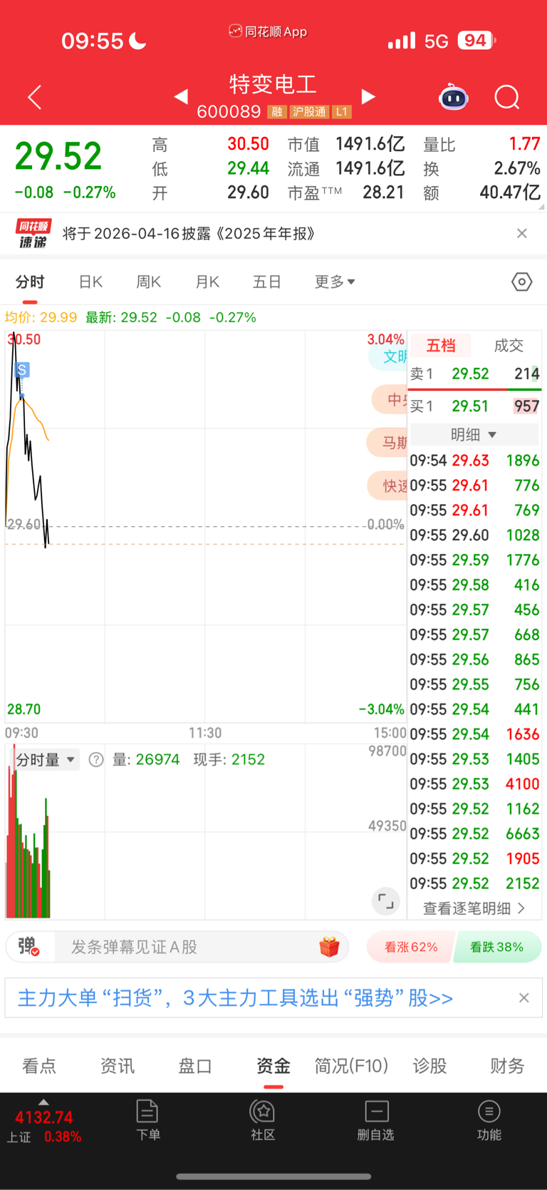 $特变电工(SH600089)$ 的确要冲高跑,祖训,还犹豫了下