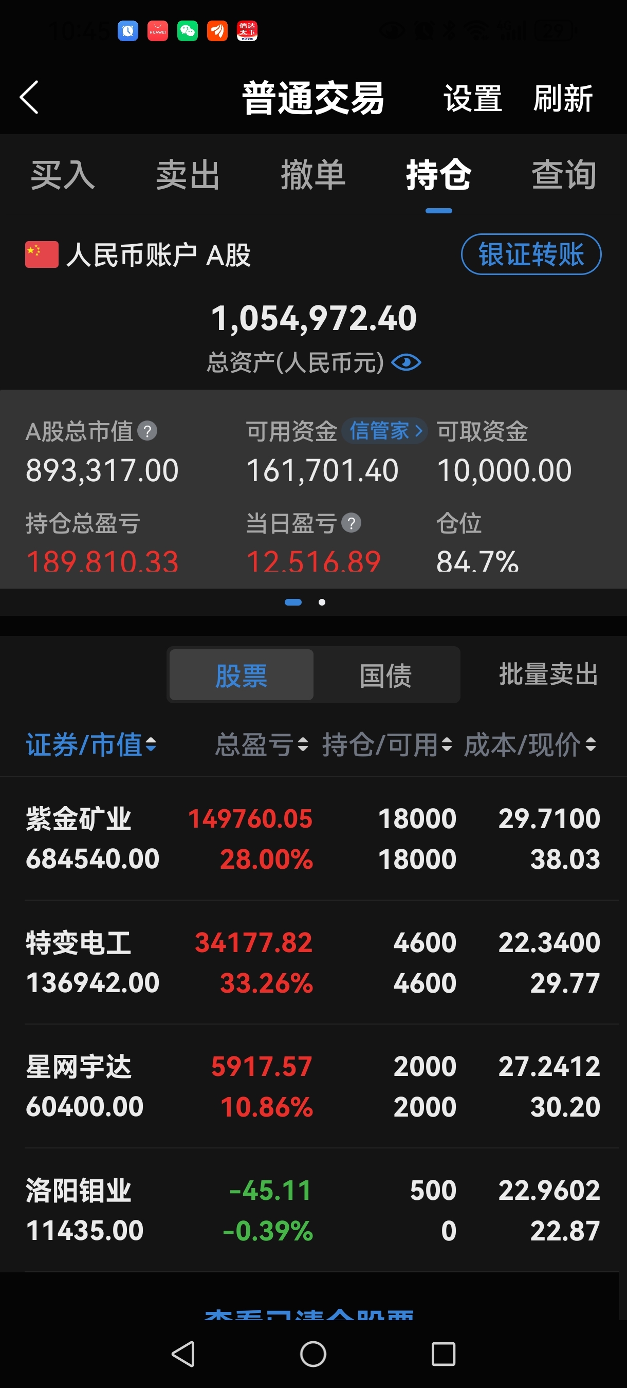 有特变电工,有紫金矿业,有白银有色,想做实名认证还差点粉丝,求关注,记录实盘。求