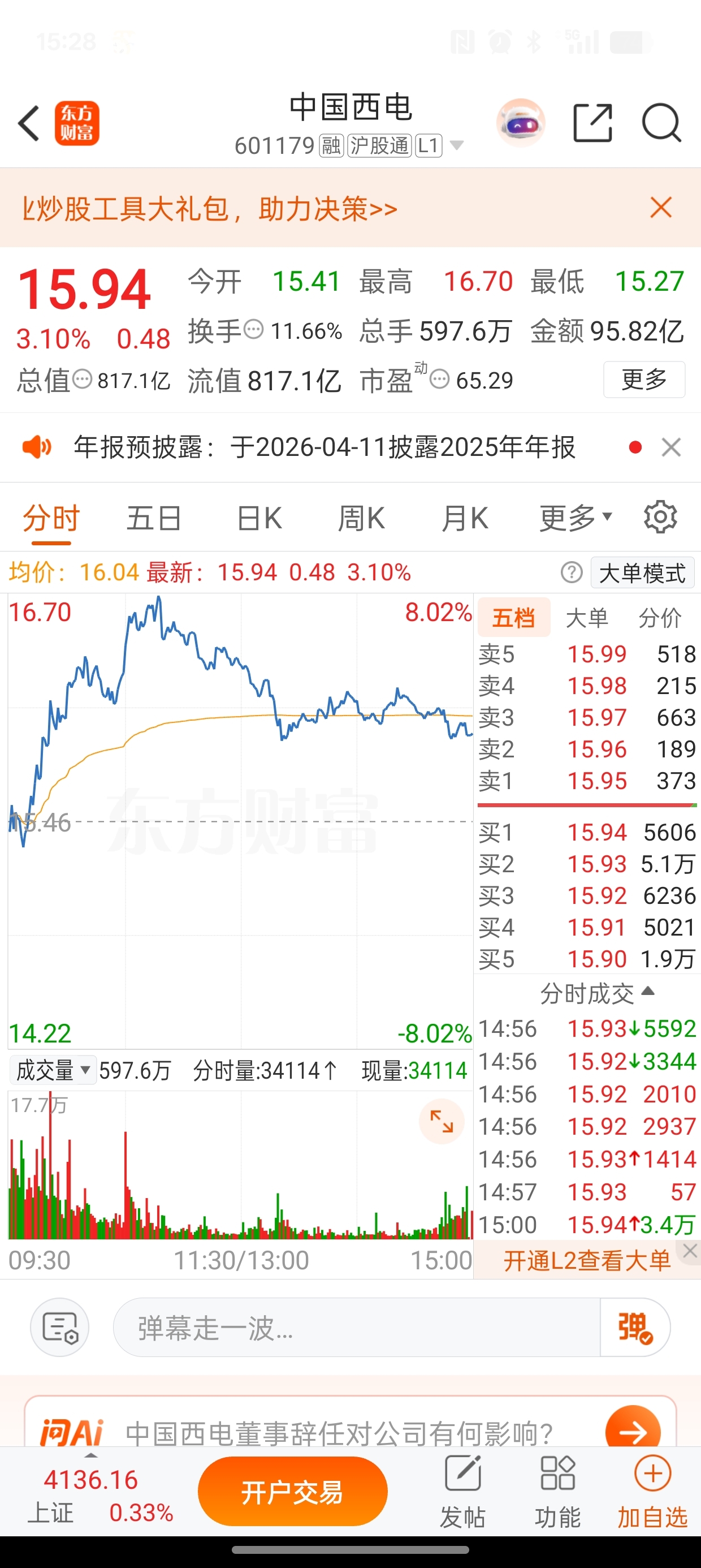 $特变电工(SH600089)$ 昨天换手率和走势一样,今天一样的换手率不一样的走势,还是西电更受欢迎