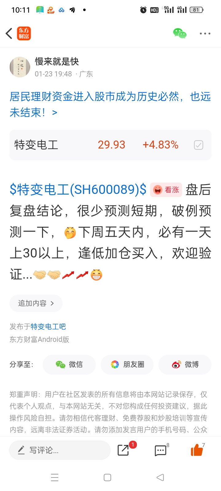 $特变电工(SH600089)$ 怎么样,周五收盘时候预测的,我的预测准不准?