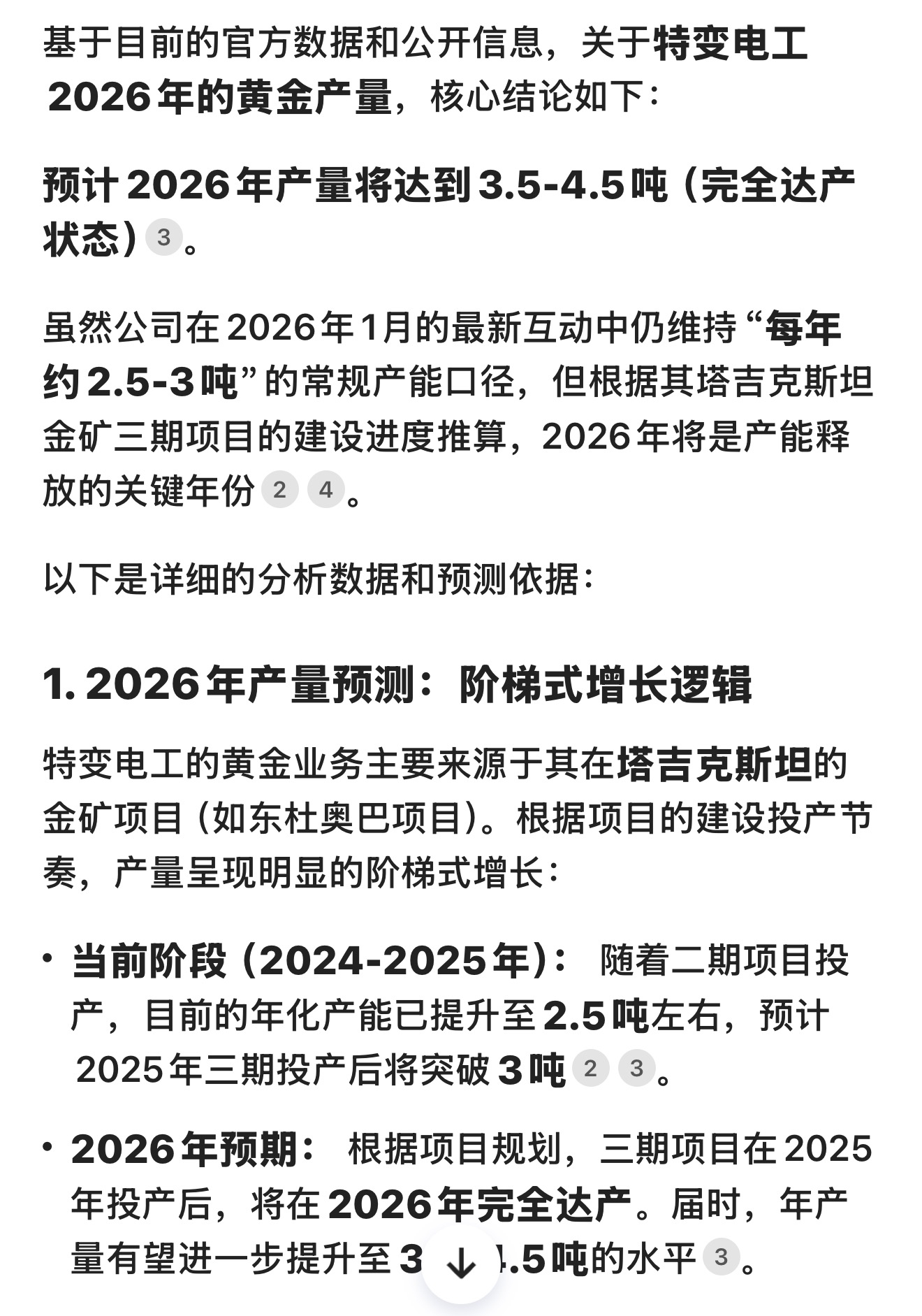 $特变电工(SH600089)$ 2025年年产黄金3吨,2026年年产黄金4.5吨