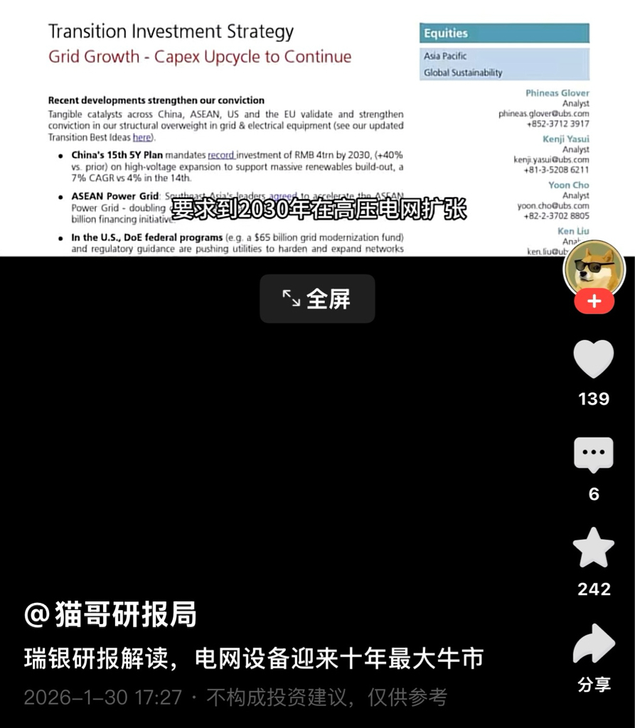 $特变电工(SH600089)$ 瑞银:电网设备十年最大牛市