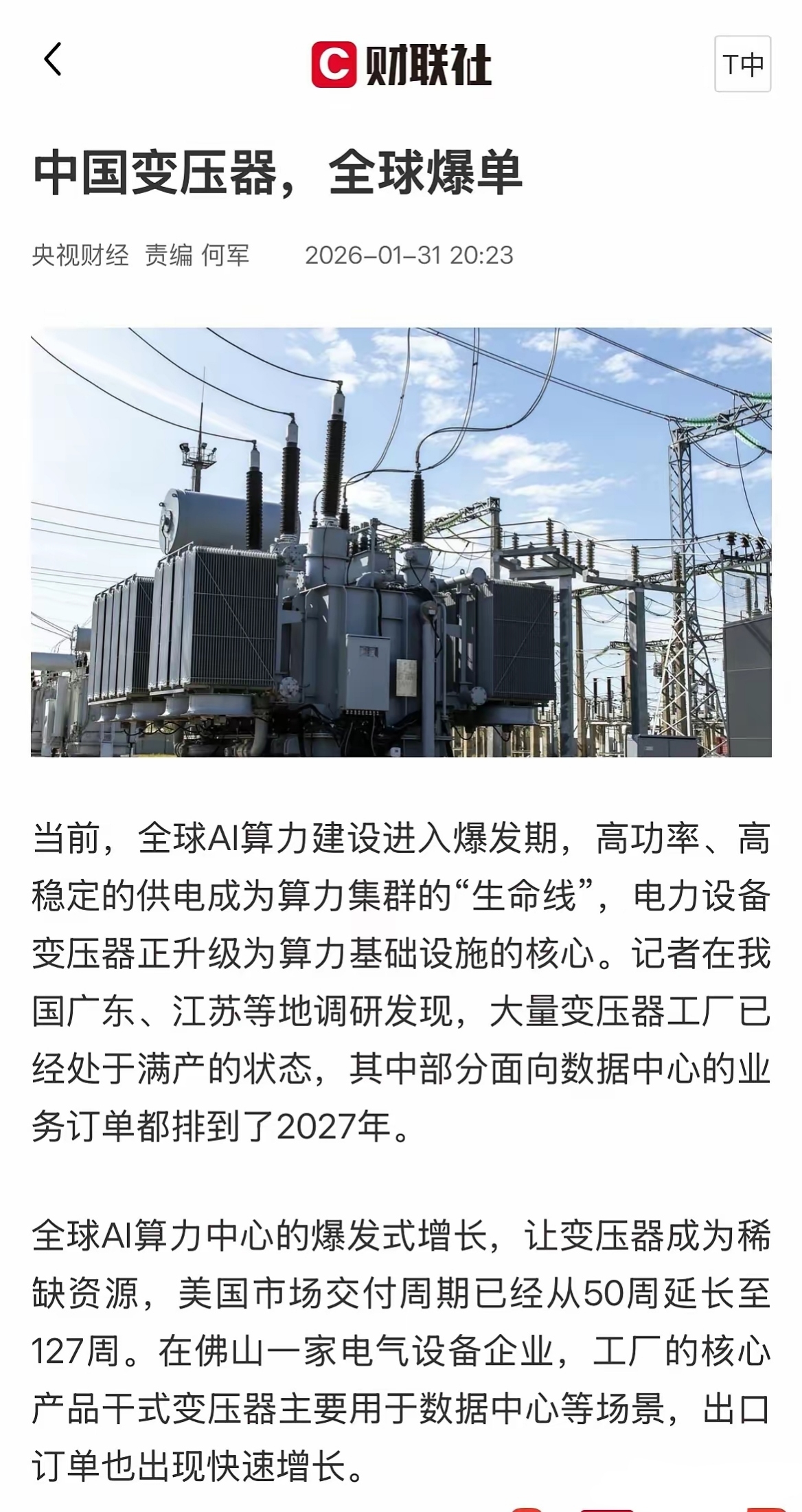 全球AI算力进入爆发期,全球对特高压设备的需求大增,变压器成了稀缺资源!
