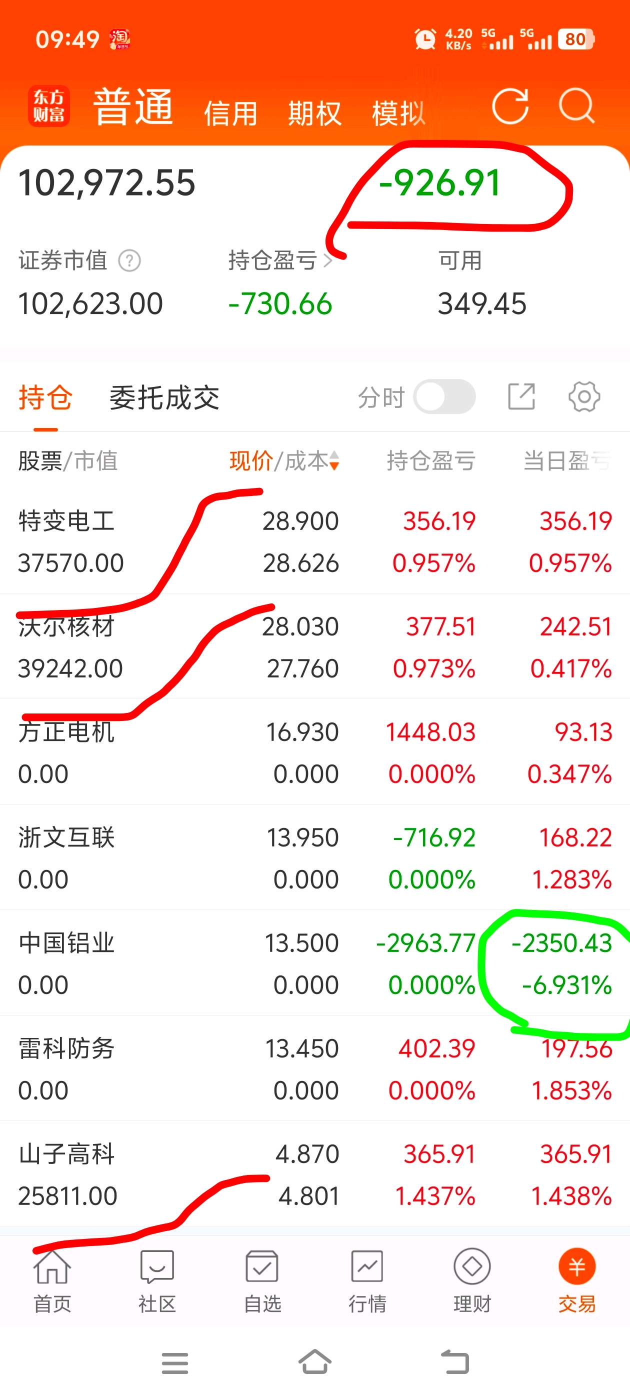 2月2日,周一今天拿了这3个。中国铝业就星期五进今天出,拿了一天亏的有点多-6.