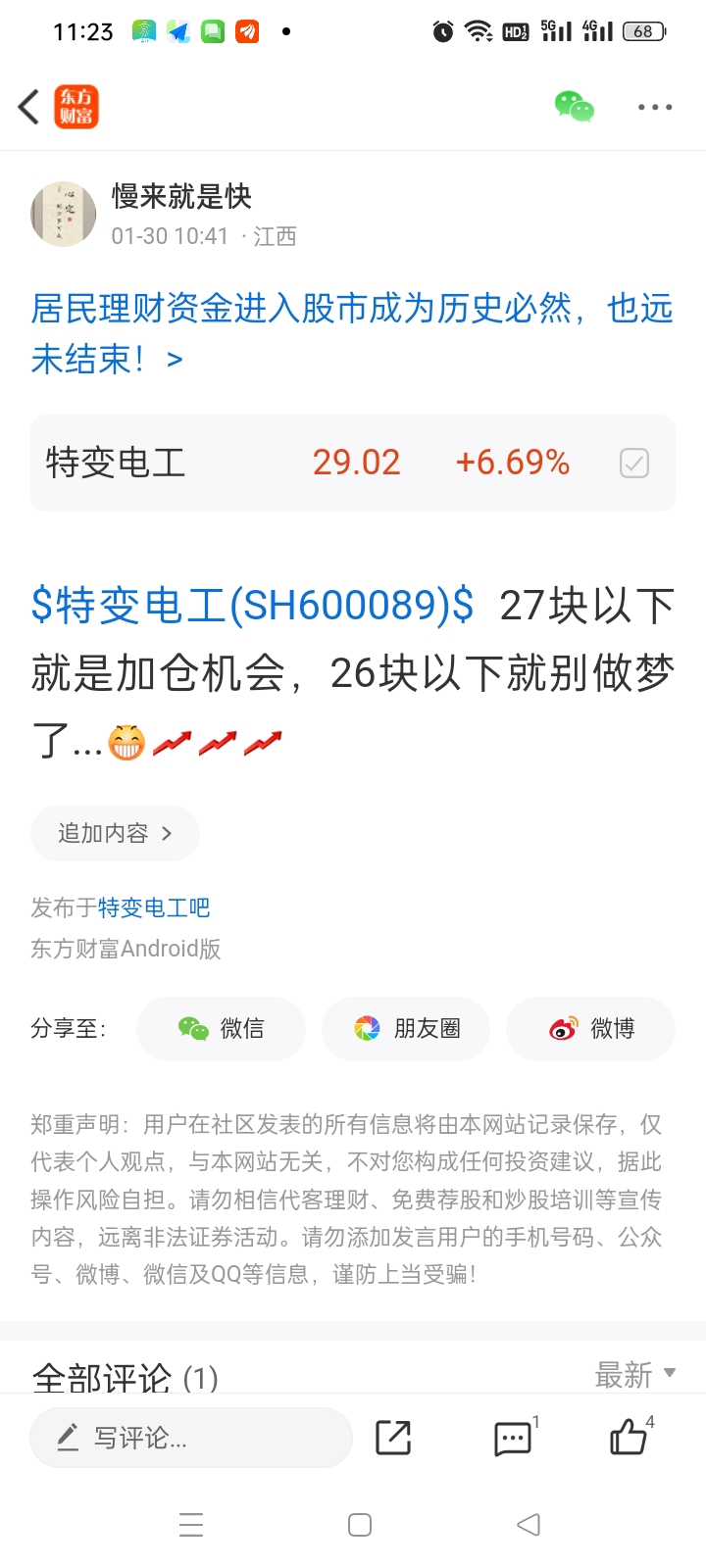温馨提示: 1.根据《证券法》规定,禁止编造、传播虚假信息或者误导性信息,扰乱证券市场;2.用户在本社区发表的所有资料、言论等仅代表个人观点,与本网站立场无关,不对您构成任何投资建议。用户应基于自己的独立判断,自行决定证券投资并承担相应风险。《东方财富社区管理规定》