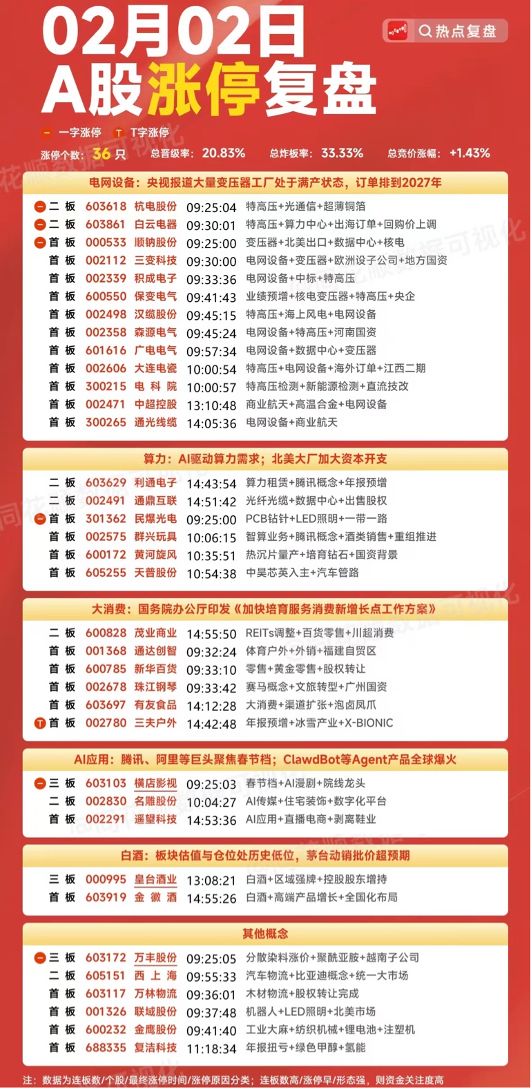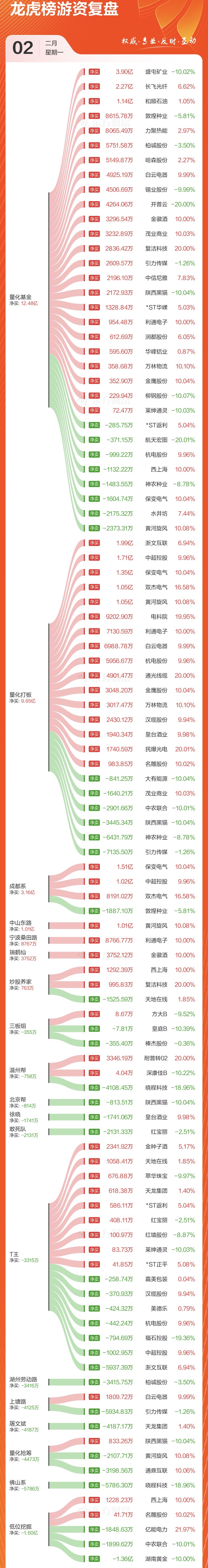 2月2日 游资龙虎榜&各大板块涨停个股复盘