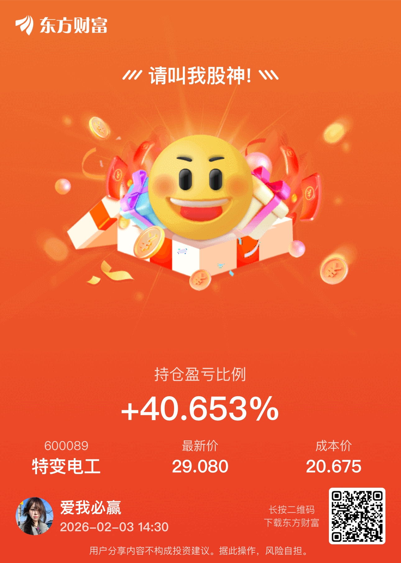 温馨提示: 1.根据《证券法》规定,禁止编造、传播虚假信息或者误导性信息,扰乱证券市场;2.用户在本社区发表的所有资料、言论等仅代表个人观点,与本网站立场无关,不对您构成任何投资建议。用户应基于自己的独立判断,自行决定证券投资并承担相应风险。《东方财富社区管理规定》