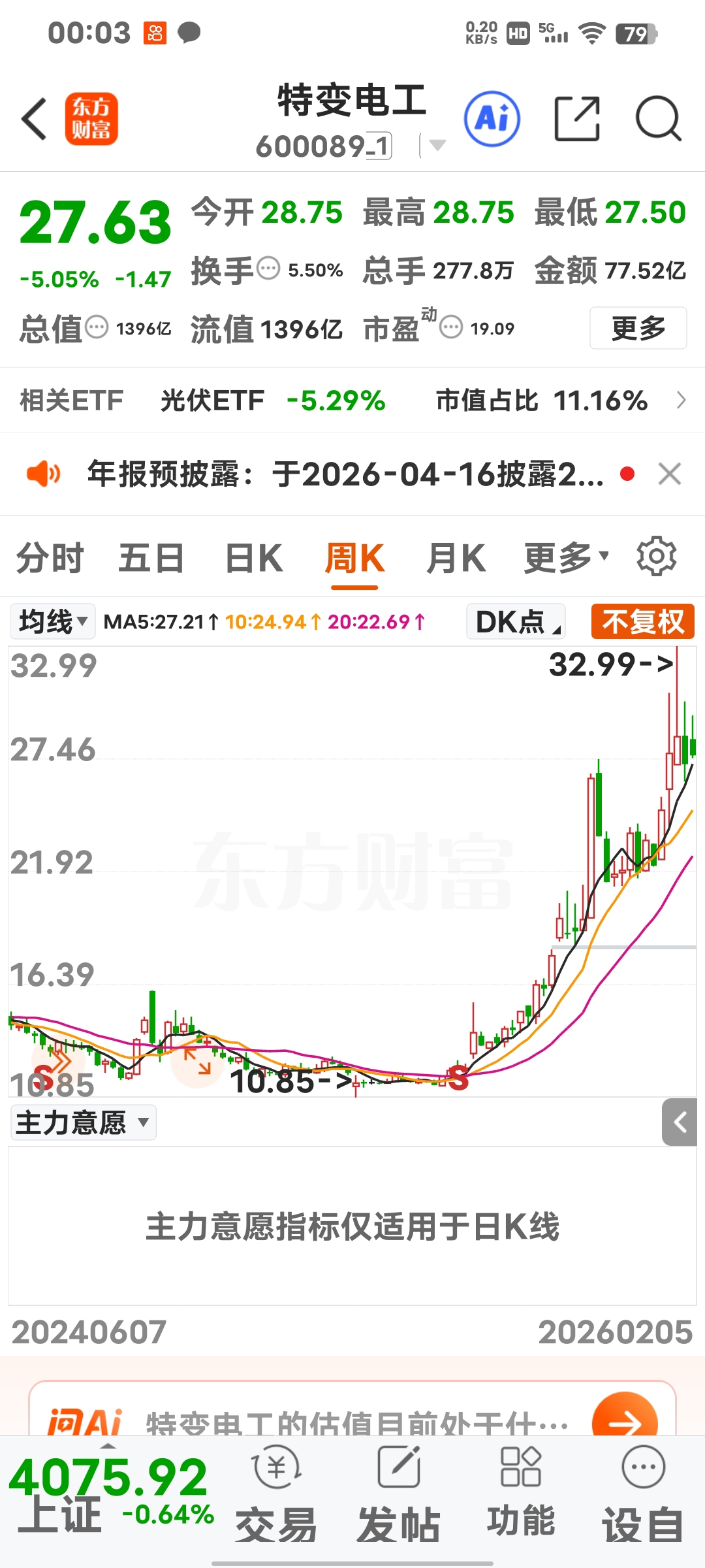 10.85元才是特变电工的低部′