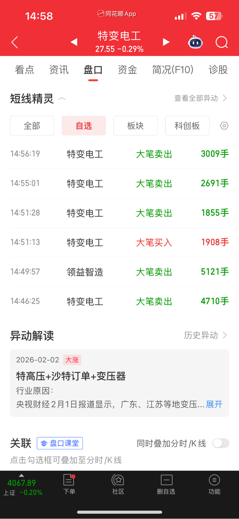 $特变电工(SH600089)$ 尾盘大卖盘怎么不显示?同花顺都显示尾盘大量卖出,周一又喇叭了