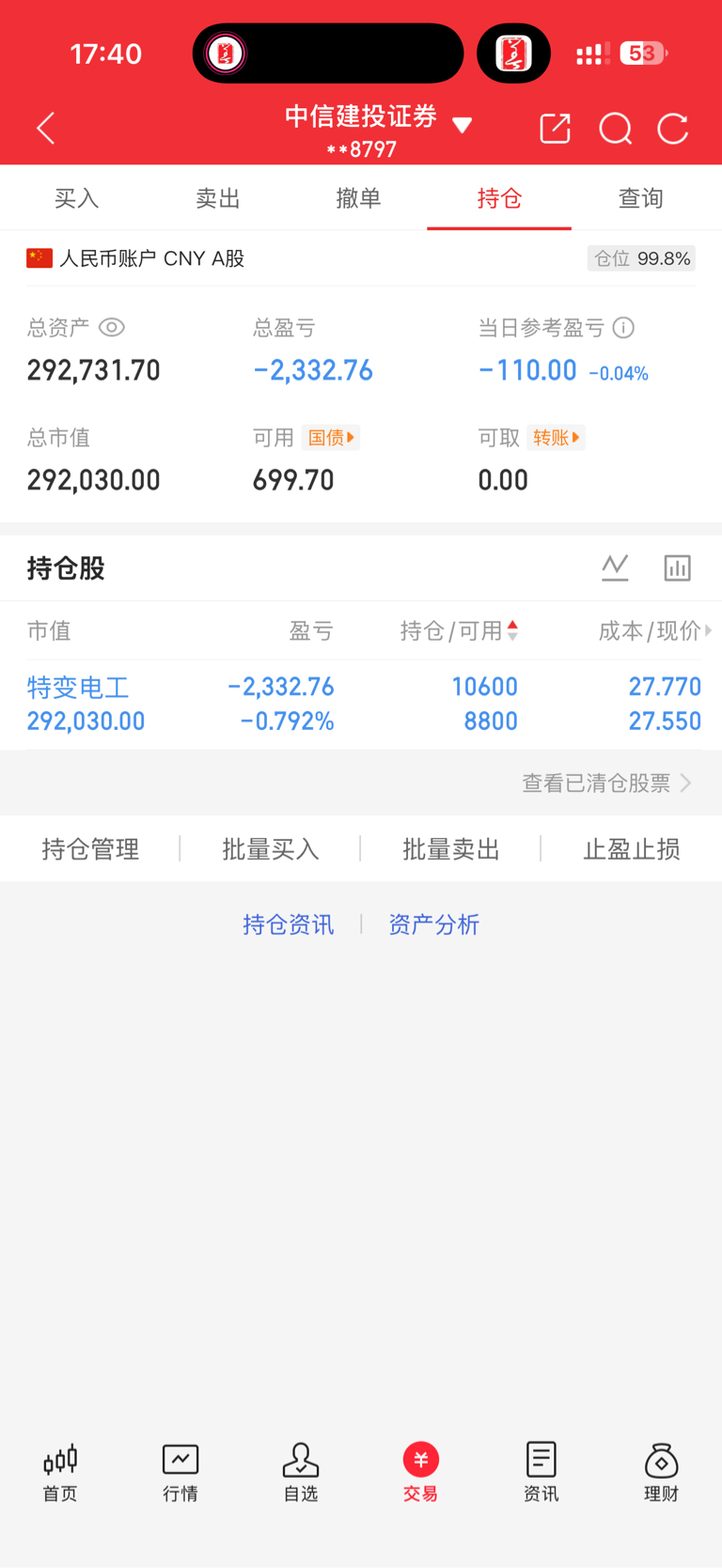 $特变电工(SH600089)$ 反反复复拉扯1月22 29建仓 好消息成本降到27.77。坏消息手续费花了将近700