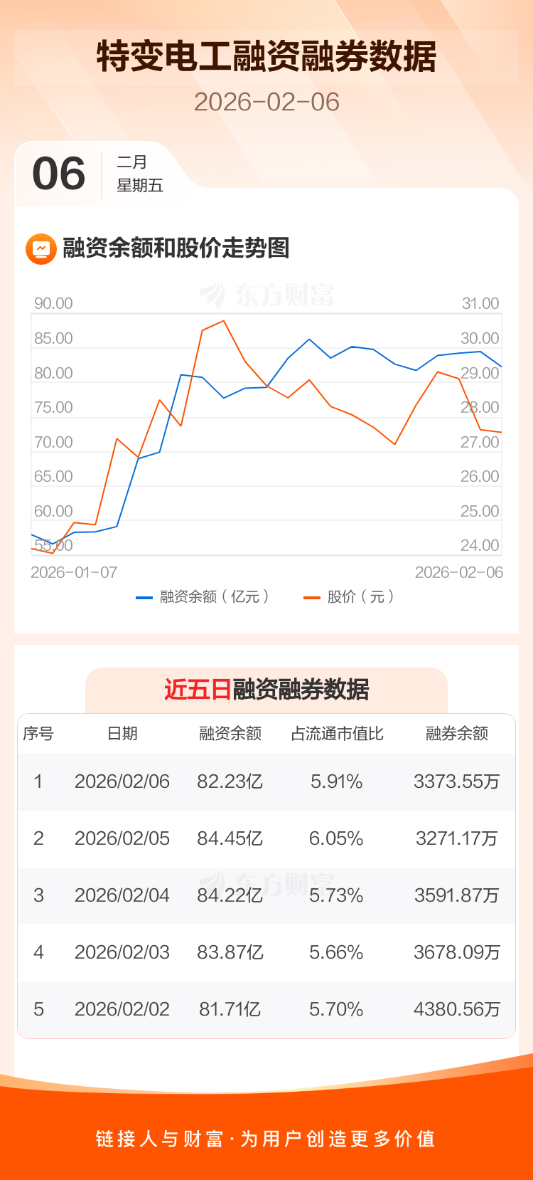 交易所最新数据显示,特变电工于2026年2月6日获融资买入4.70亿元,融资偿还6.92亿元,当日融资净偿还2.22亿元。目前,该股融资余额82.23亿,占流通市值比例为5.91%。