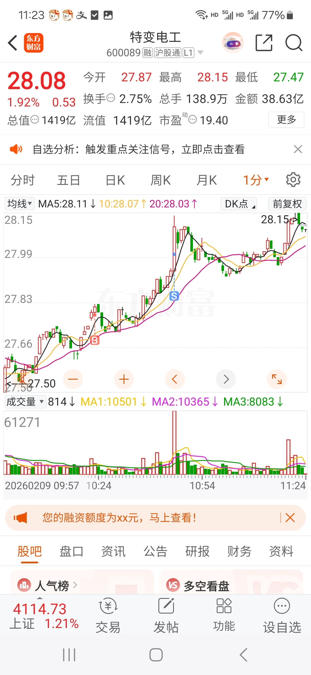 $特变电工(SH600089)$ 二次价格新高,但成交量没跟上,说明价格没得到认可。28卖的。看看能不能接回来
