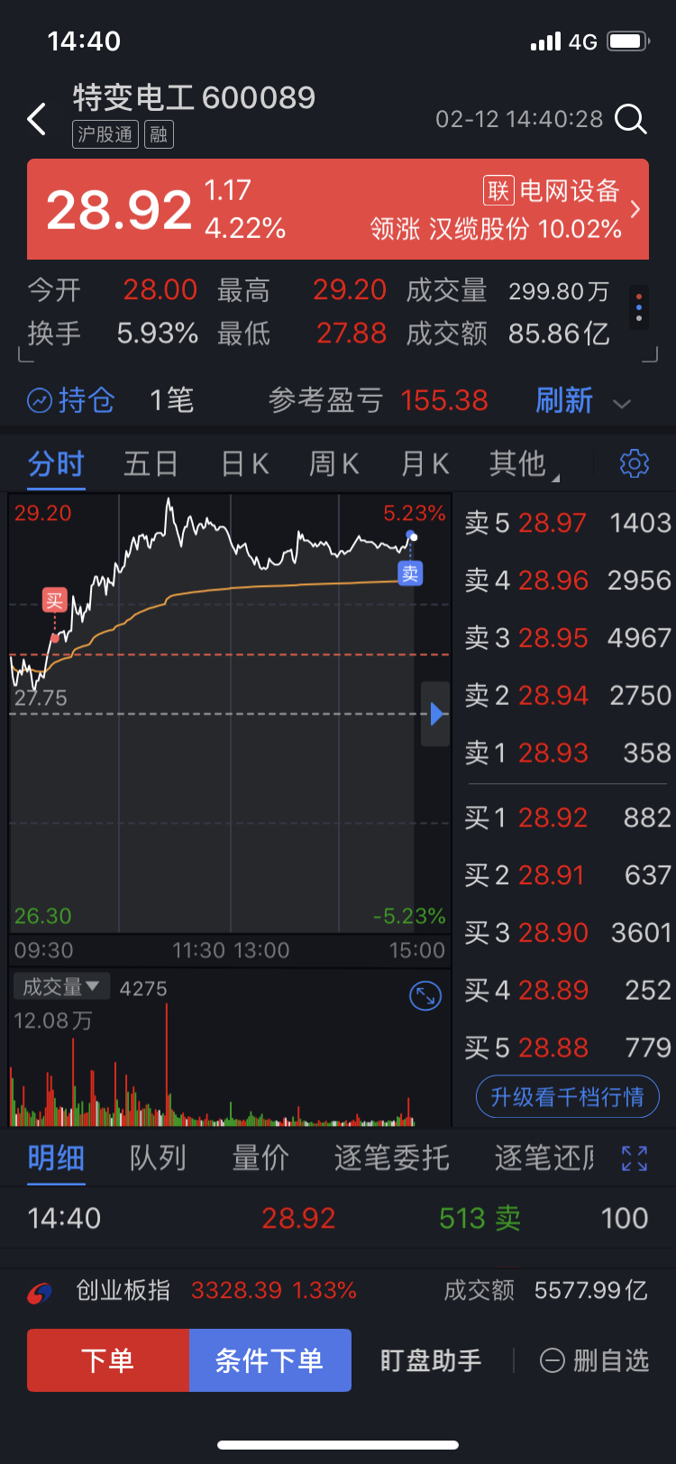 $特变电工(SH600089)$ 上午28.23元跟风追进,下午28.95元卖出做个日内T