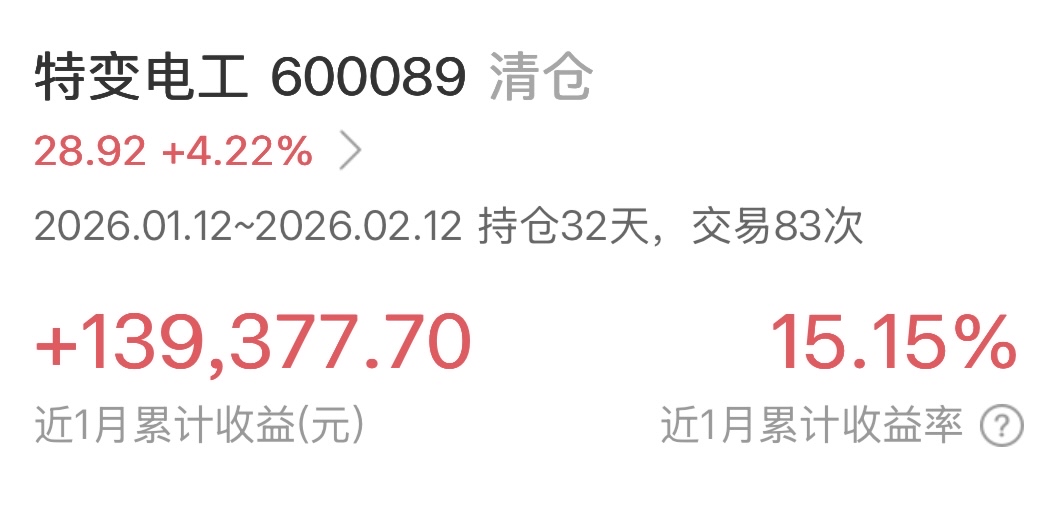 $特变电工(SH600089)$ 很遗憾,没能坚持与特变一同迎接2026农历马年。心中纵有万般不舍,昨天终究是选择了离开,人的一生都在不断离开成长。唯有祝愿特变越来越好,感谢特变曾经带来的精彩。给大家拜个早年:祝福吧友新年快乐、心想事成、股票长红、马年大吉!
