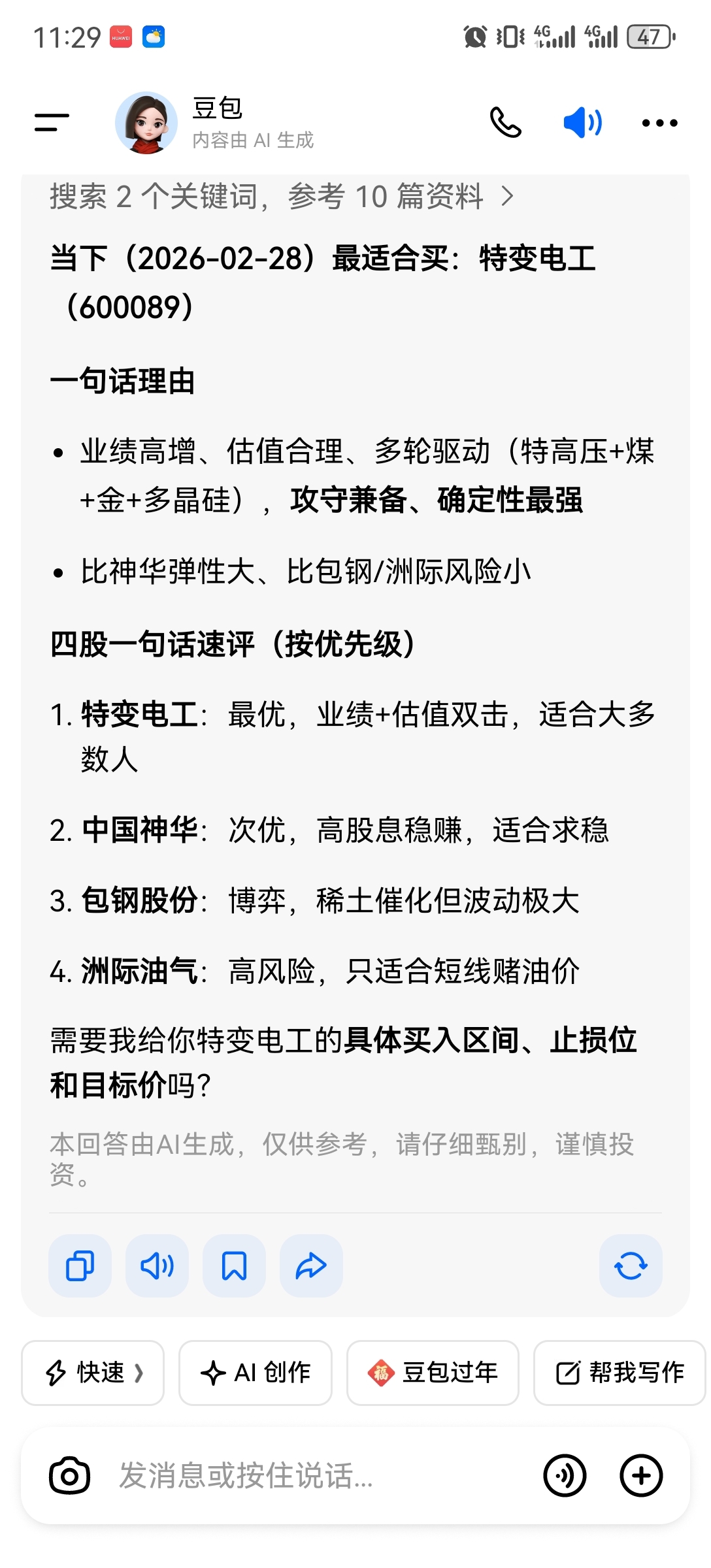 $特变电工(SH600089)$ 豆包说你最行,你到底行不行。