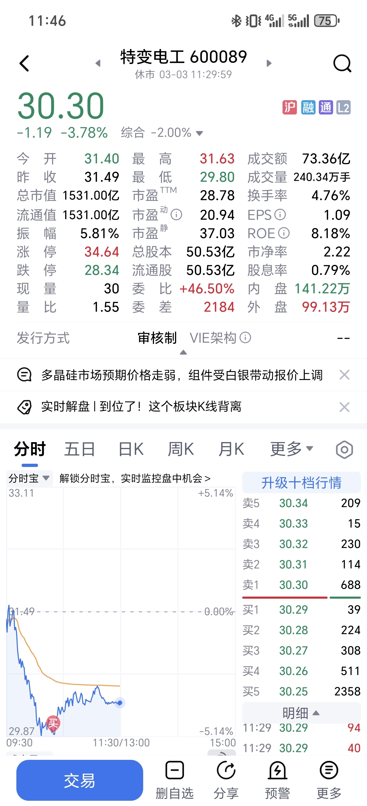 $特变电工(SH600089)$ 30以下,大胆加仓,我是29.9加的,短期见不到30以下的收盘价