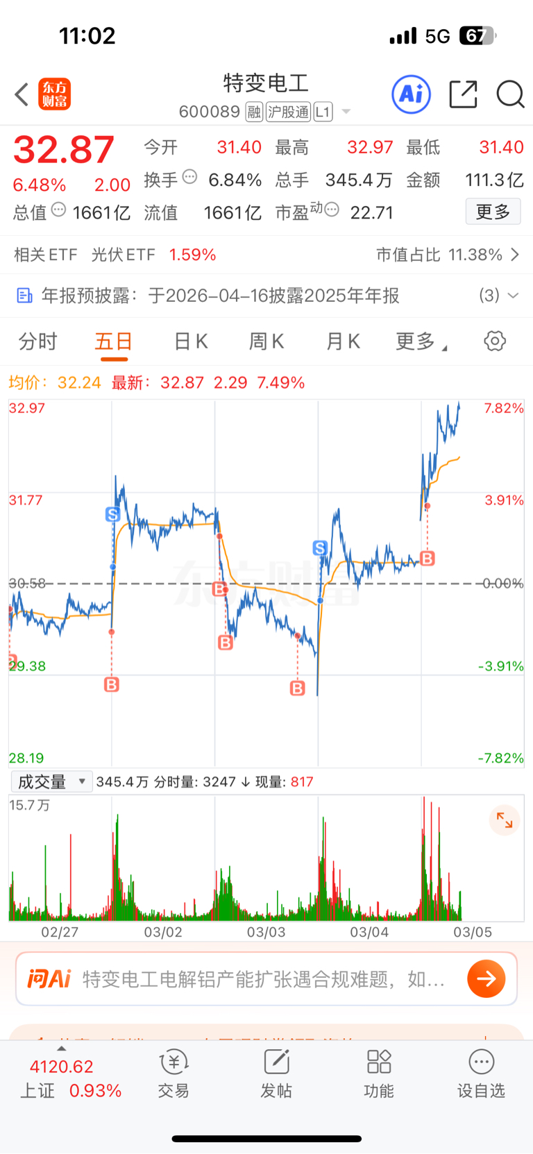 $特变电工(SH600089)$ 昨天卖飞半仓,今天接回来,感恩啊没让我拍大腿
