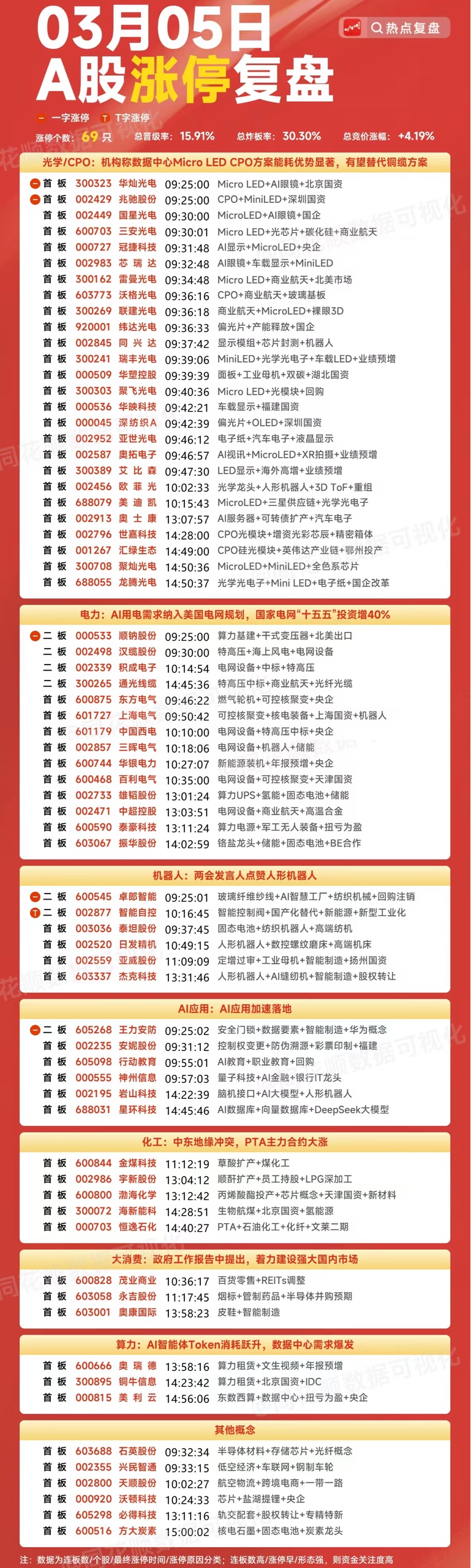3月5日 游资龙虎榜&各大板块涨停个股复盘