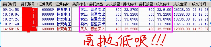 看着特变有气无力,软绵绵的,上午卖出的,一直等到尾盘才补回一点点。33.22出,32.22入,刚好差价1元。等到下周要是继续下挫,还可以实现全部差价1元或以上做T买回。对我老股东来说,这也是一种快了!