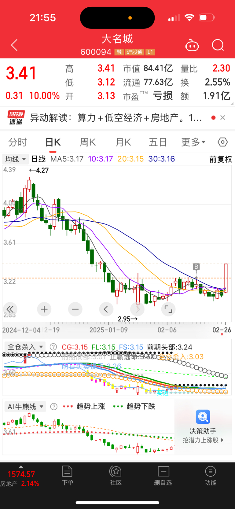 $大名城(SH600094)$