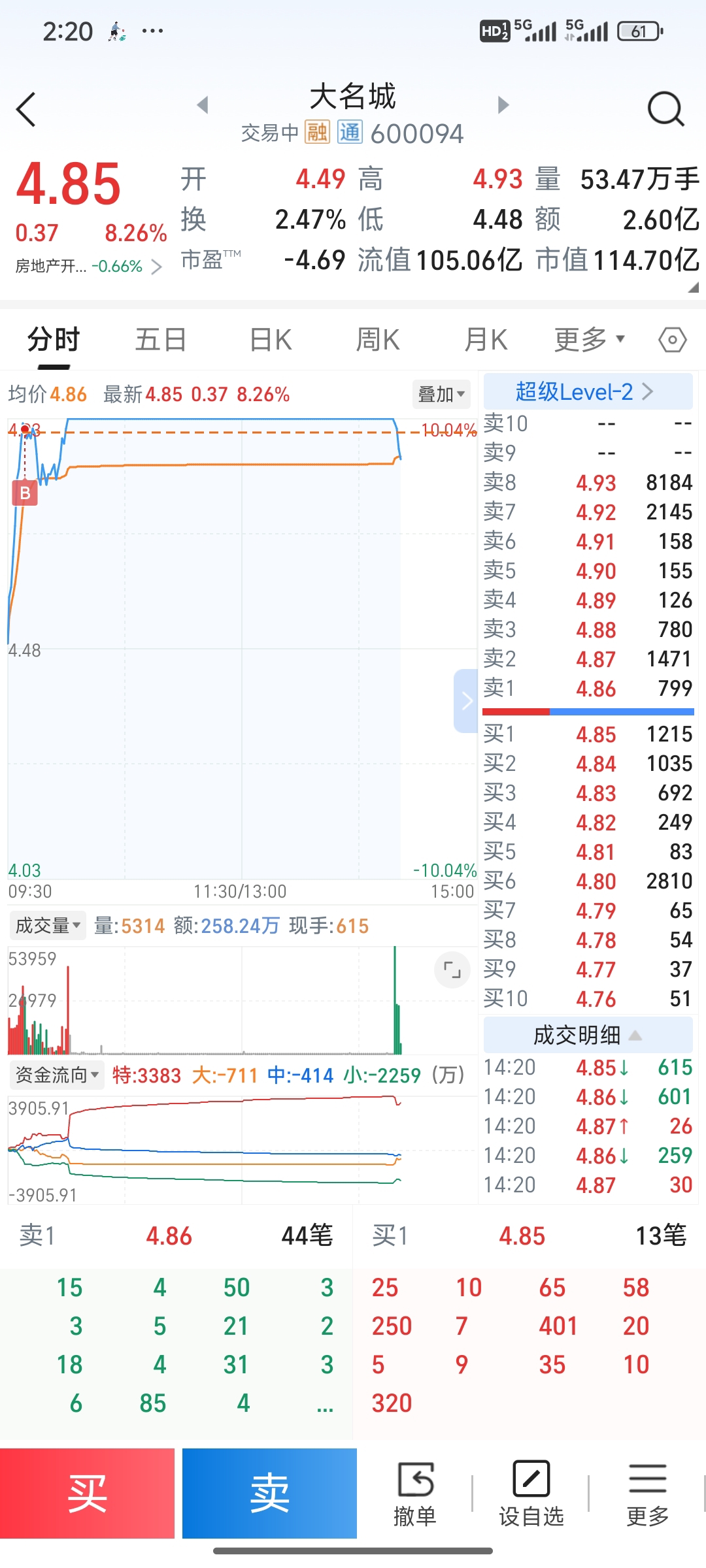 $大名城(SH600094)$ 快跑吧 今天尾盘被套住了全仓
