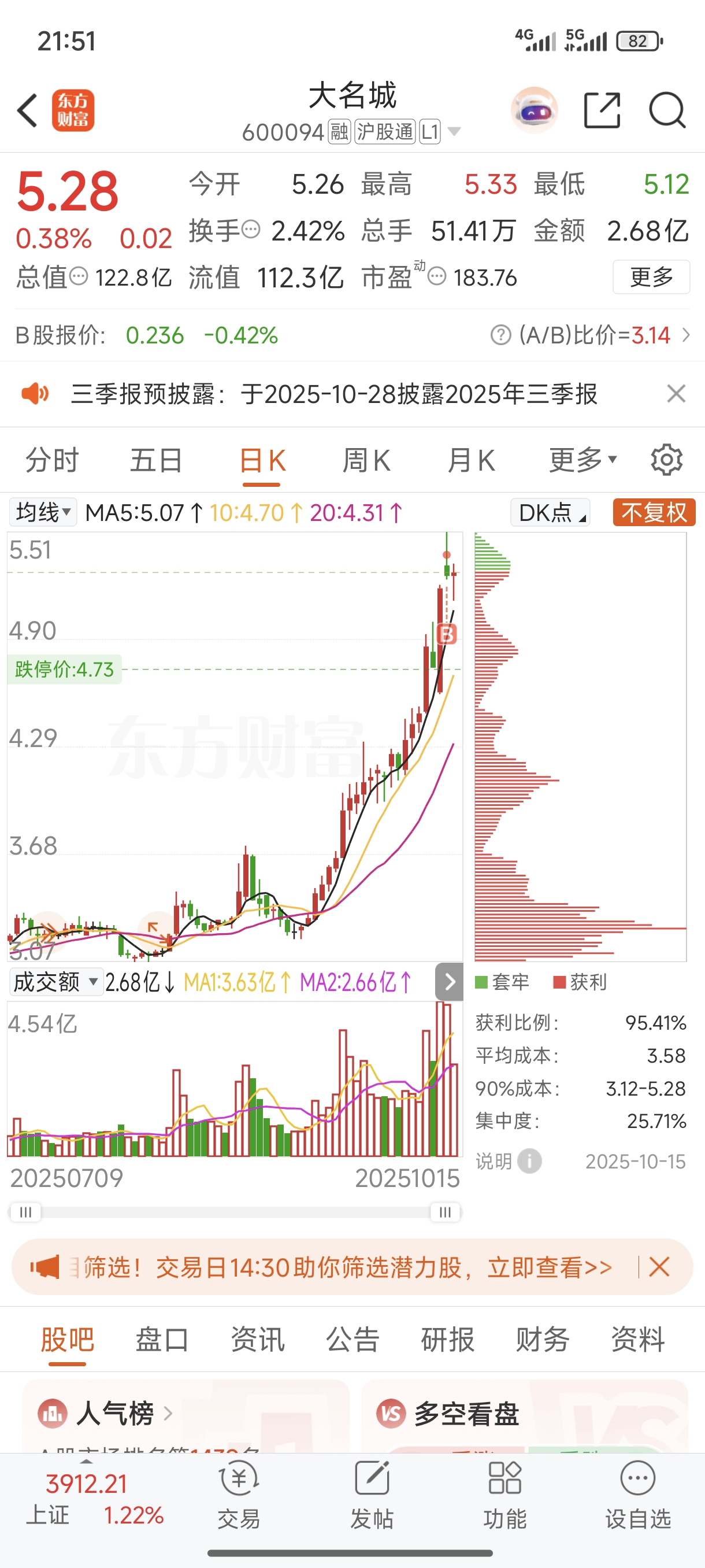 $大名城(SH600094)$ 大无畏精神,兄弟们赶紧撤