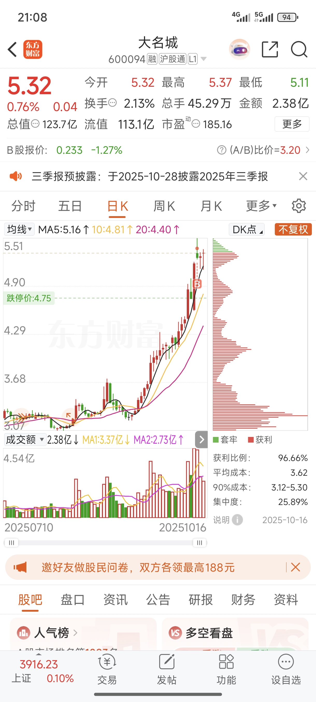 $大名城(SH600094)$ 多大点事,才有时间看股票。问题不大!