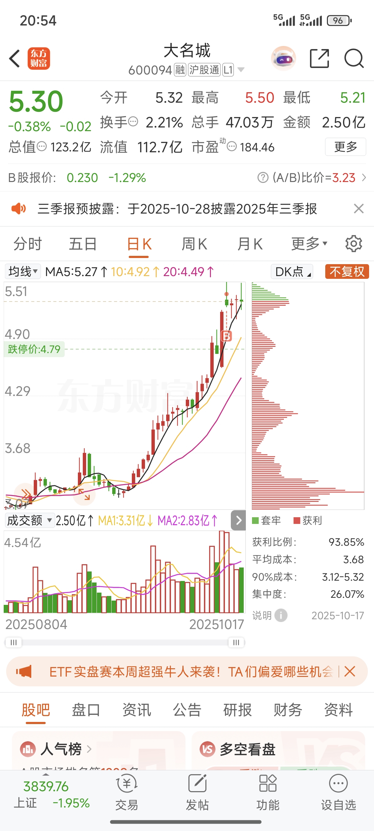$大名城(SH600094)$ 慌个锤子,哪都不去,坐等上涨,底部筹码,纹丝不动,兄弟们,绝对扛旗担当