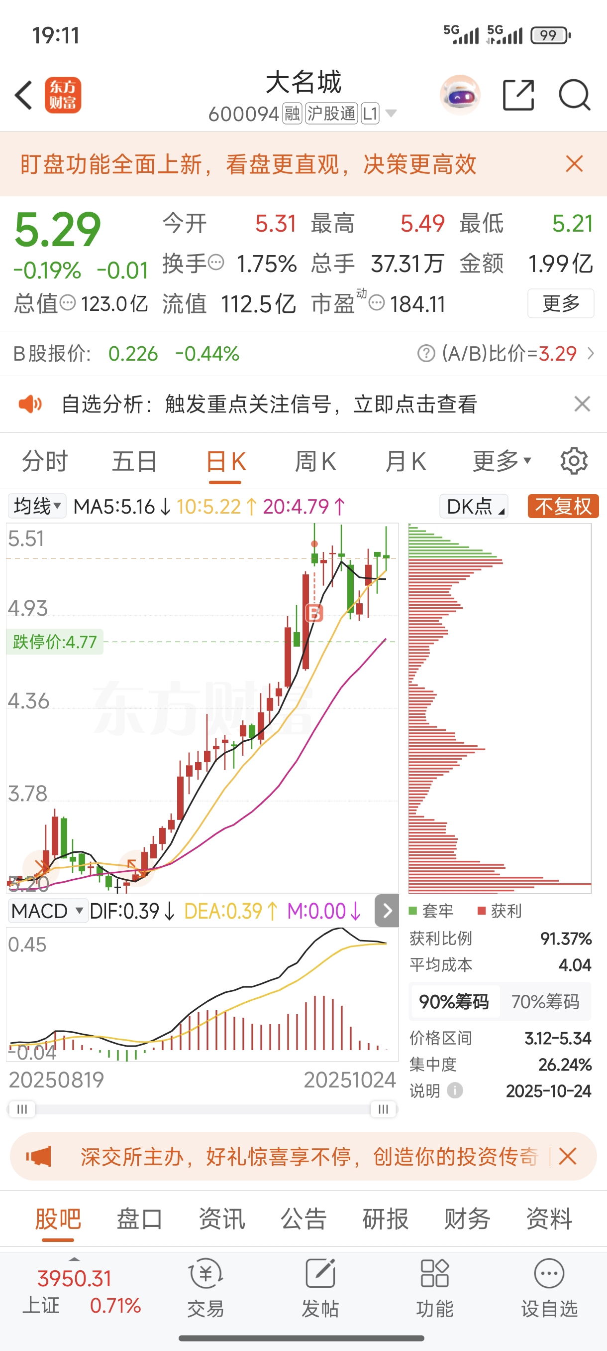 $大名城(SH600094)$ 等着上涨,大涨特涨