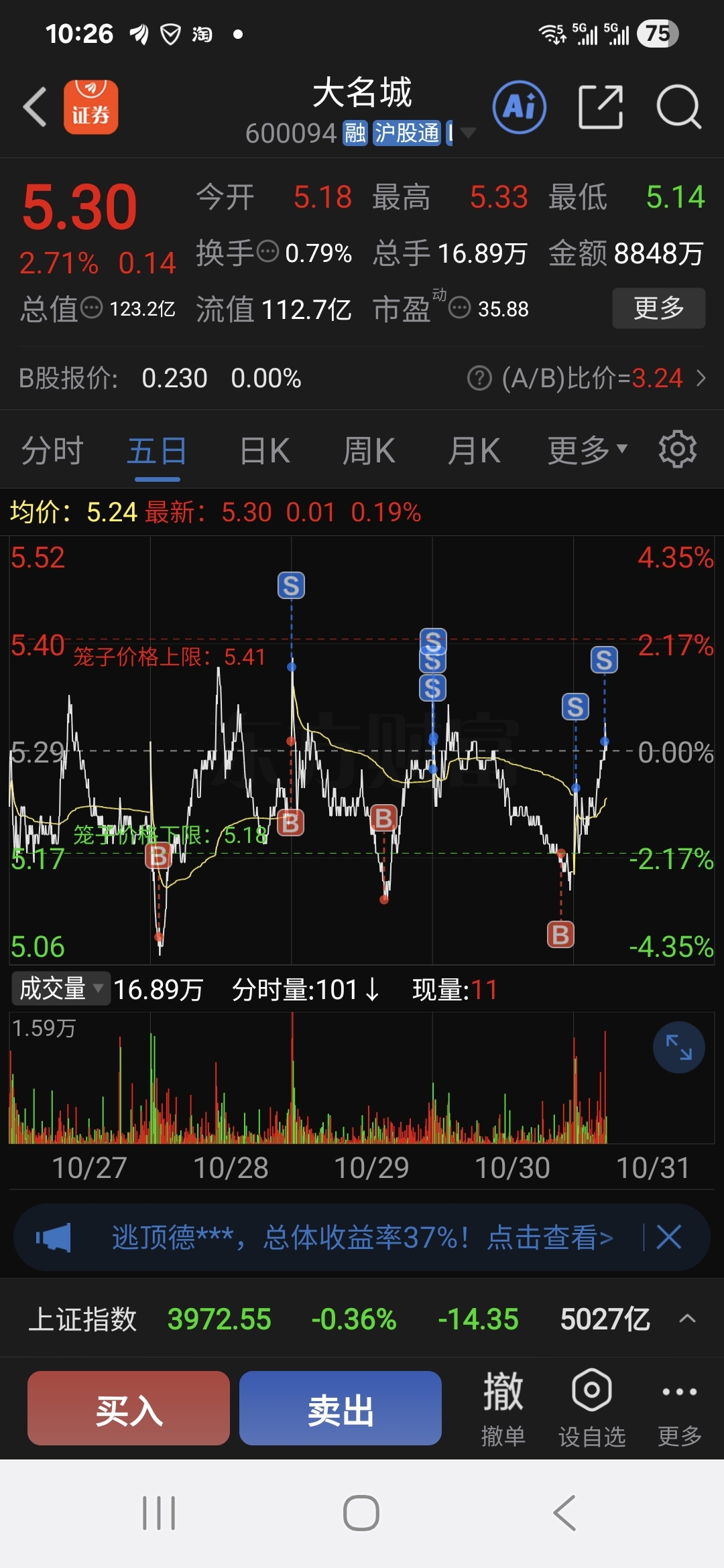 $大名城(SH600094)$ 530应该差不多了,到头了,早上的竞价不好,跳起来了,如砸一砸5.09再向上就稳了,开始减仓