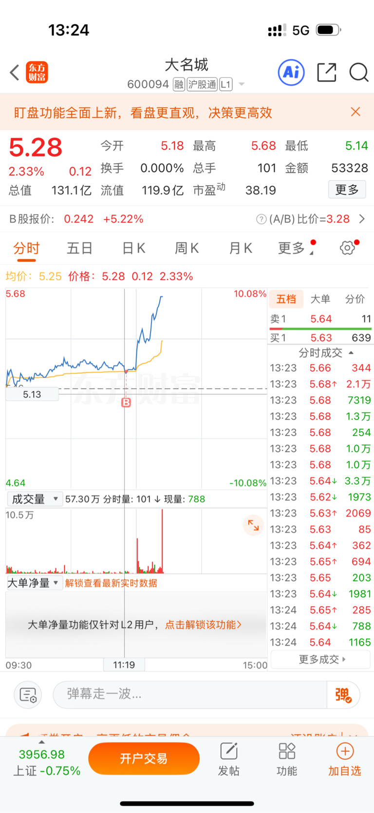 5.28选择介入$大名城(SH600094)$ #强势机会# #实盘记录# #投资干货# #投资随笔#