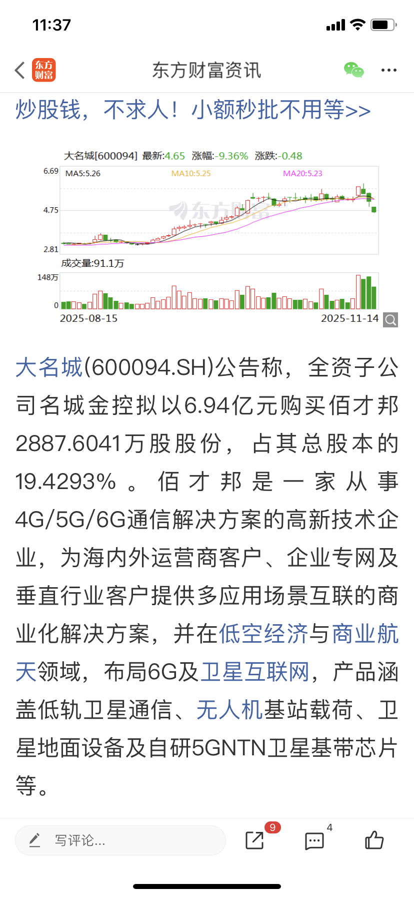 $大名城(SH600094)$ 可以添加4个概念:存储芯片、无人机、6G、卫星互联网