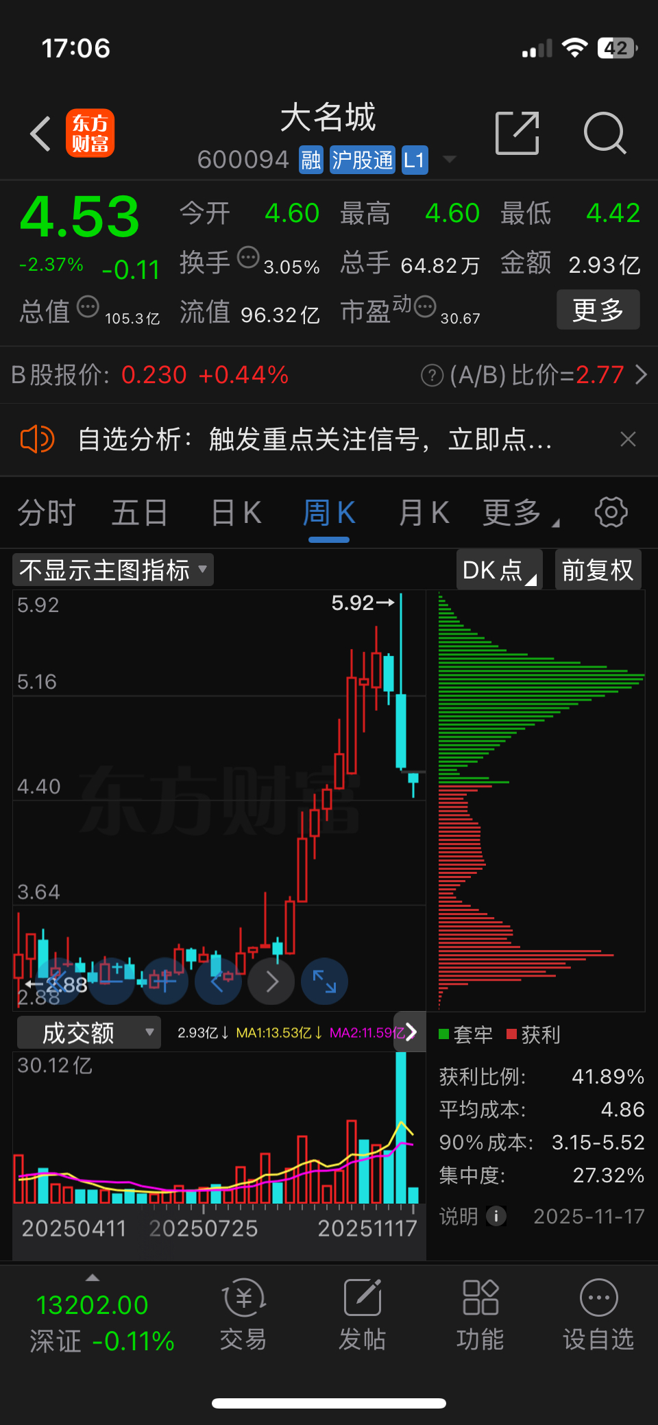 $大名城(SH600094)$ 讲点良心,某些人疯狂唱多,看笑我了