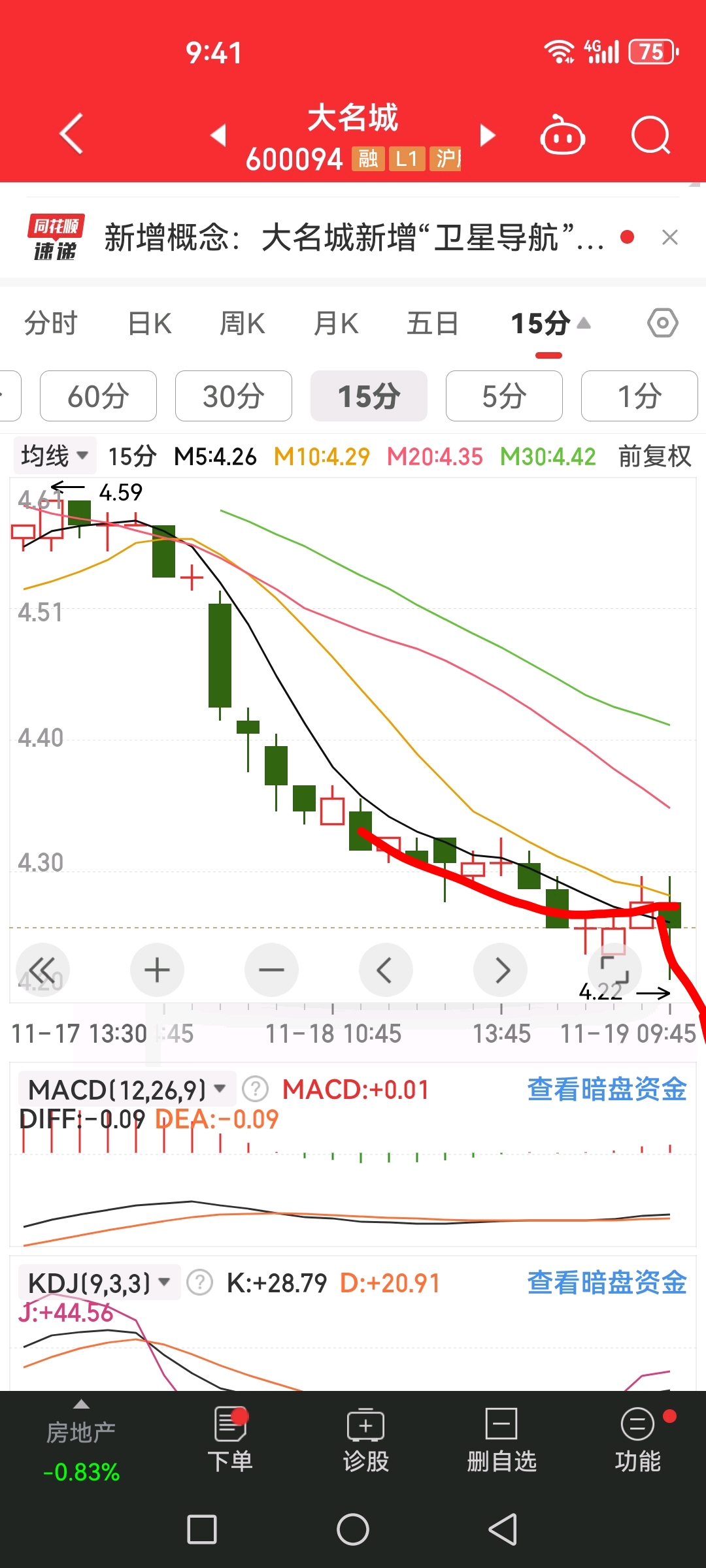 $大名城(SH600094)$ 15分选择向下,4.14起码,兄弟们有仇妈的先走