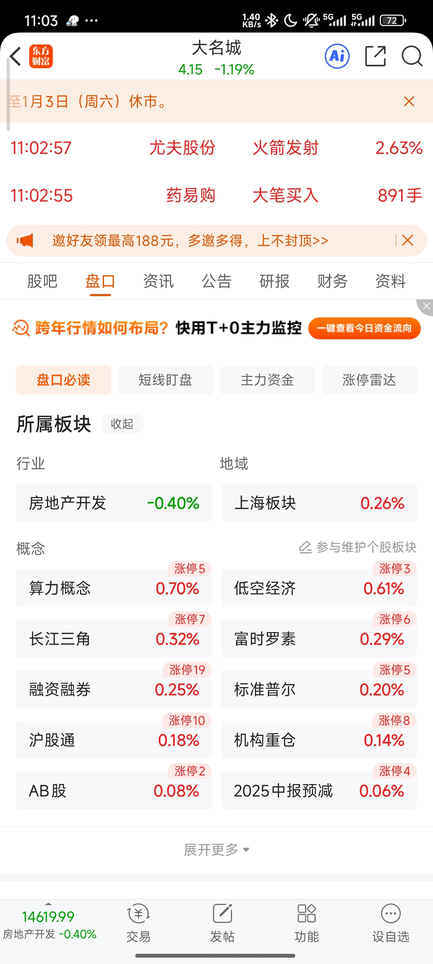 $大名城(SH600094)$ 什么都不跟,要其他概念有何用,主力亖圈家