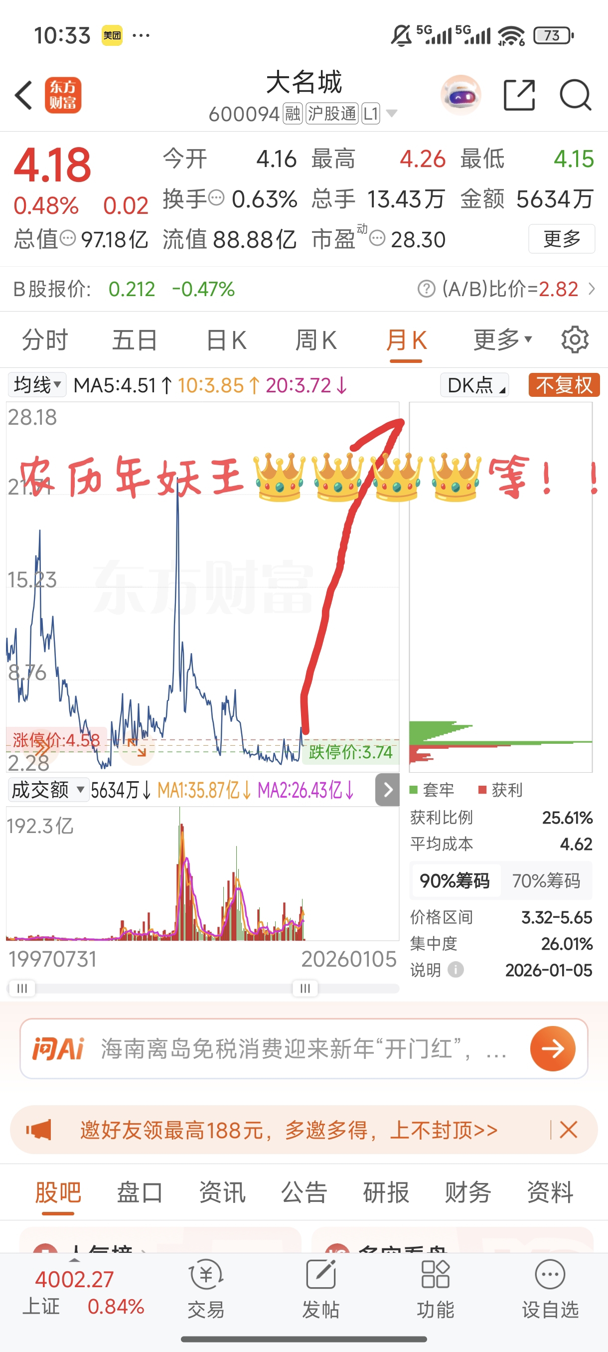 $大名城(SH600094)$ 不涨停,就等等看。不用着急!!!年前绝对妖王买年货有找落了!!
