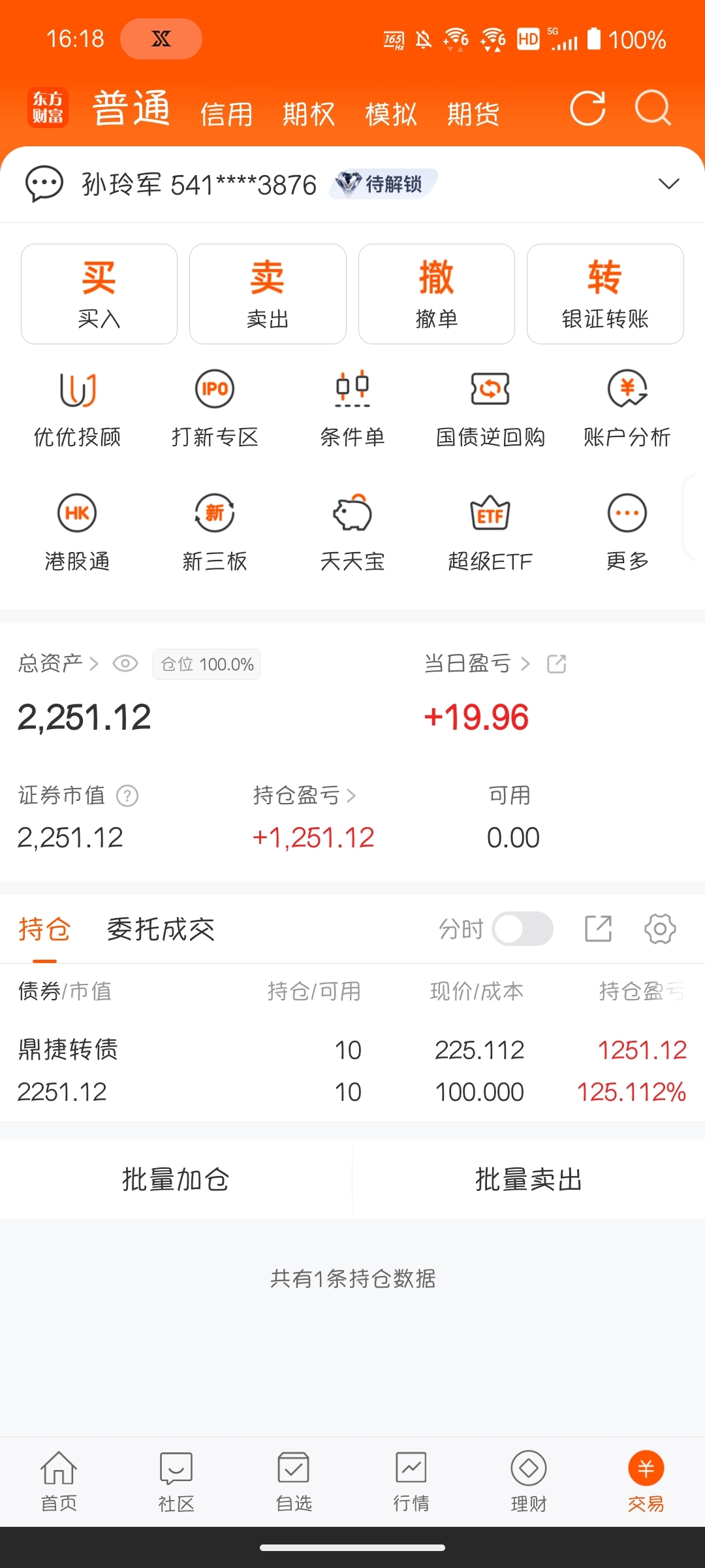 终于回本了。解套了。
