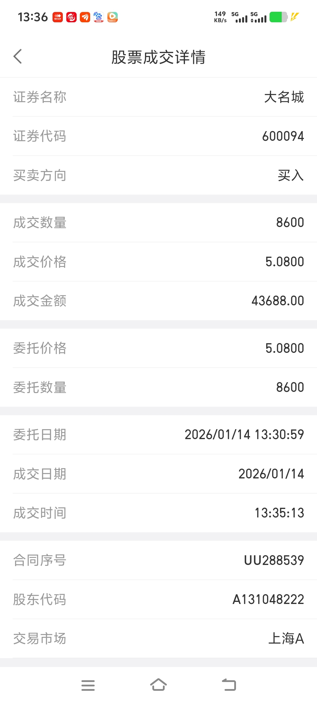 $大名城(SH600094)$ 今天买了大名城,不知明天如何