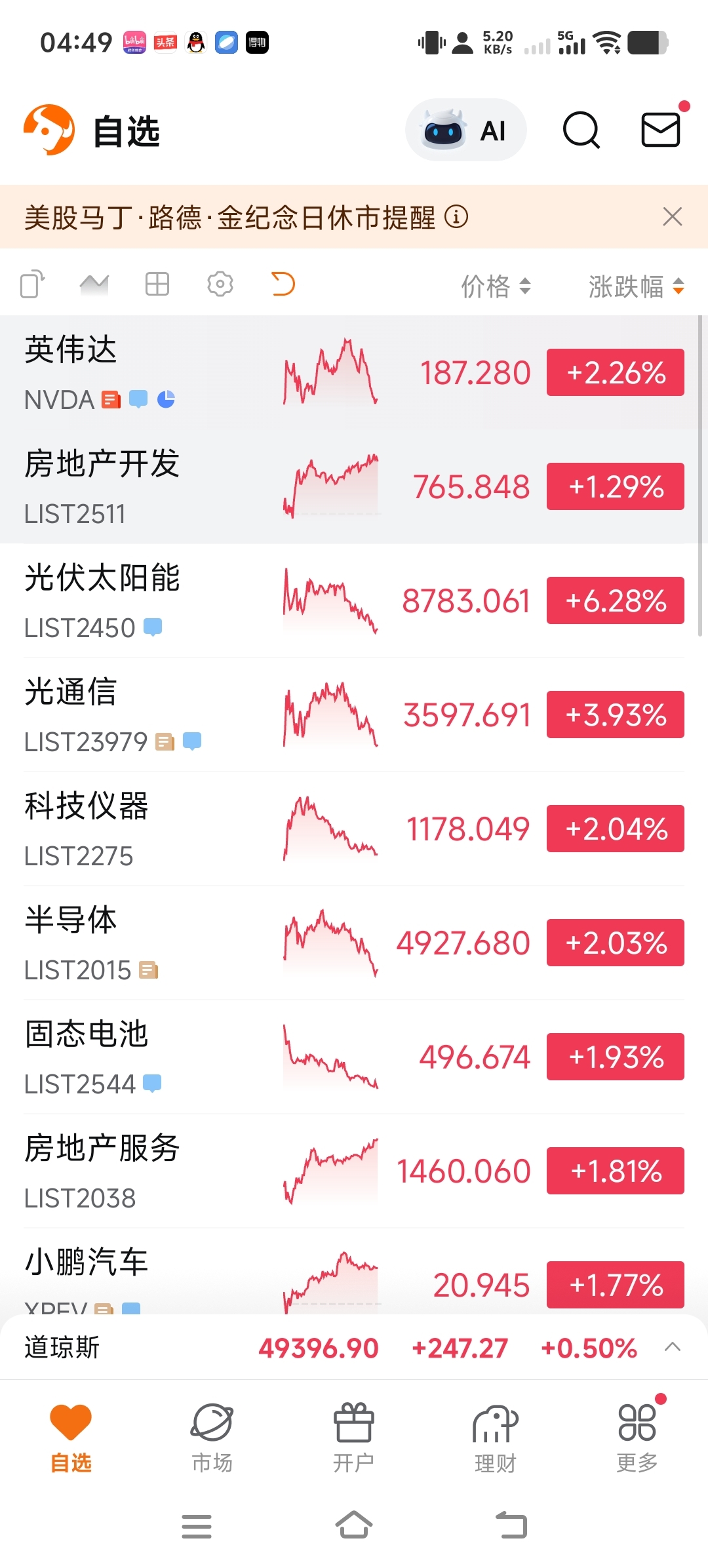 外围地产开发和英伟达都涨了,今天该你表现了