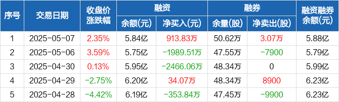 湘财股份:融资净买入913.83万元,融资余额5.84亿元(05-07)