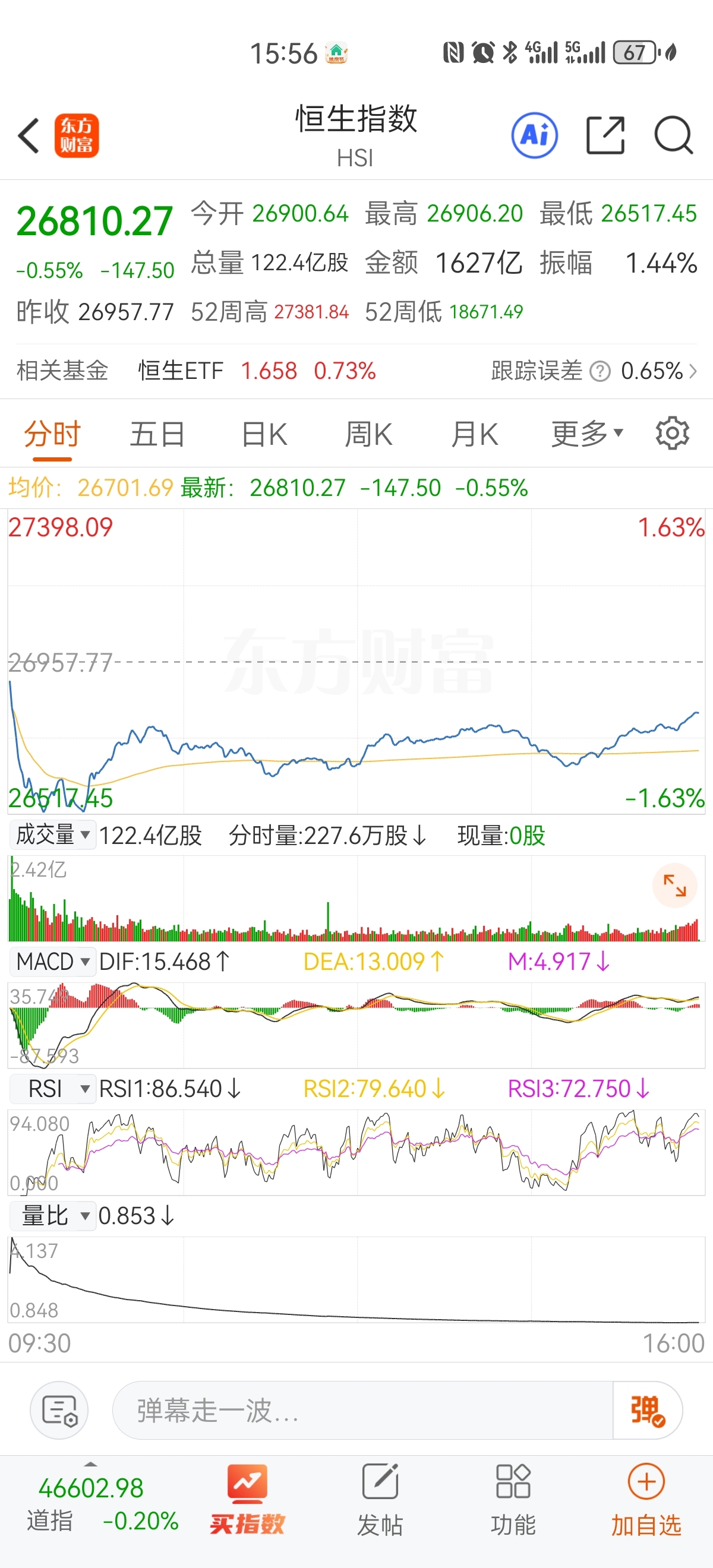 港股今天大跌!明天大A就靠你了,湘财兄弟,加油!!!我胡汉三明天回来了!!!