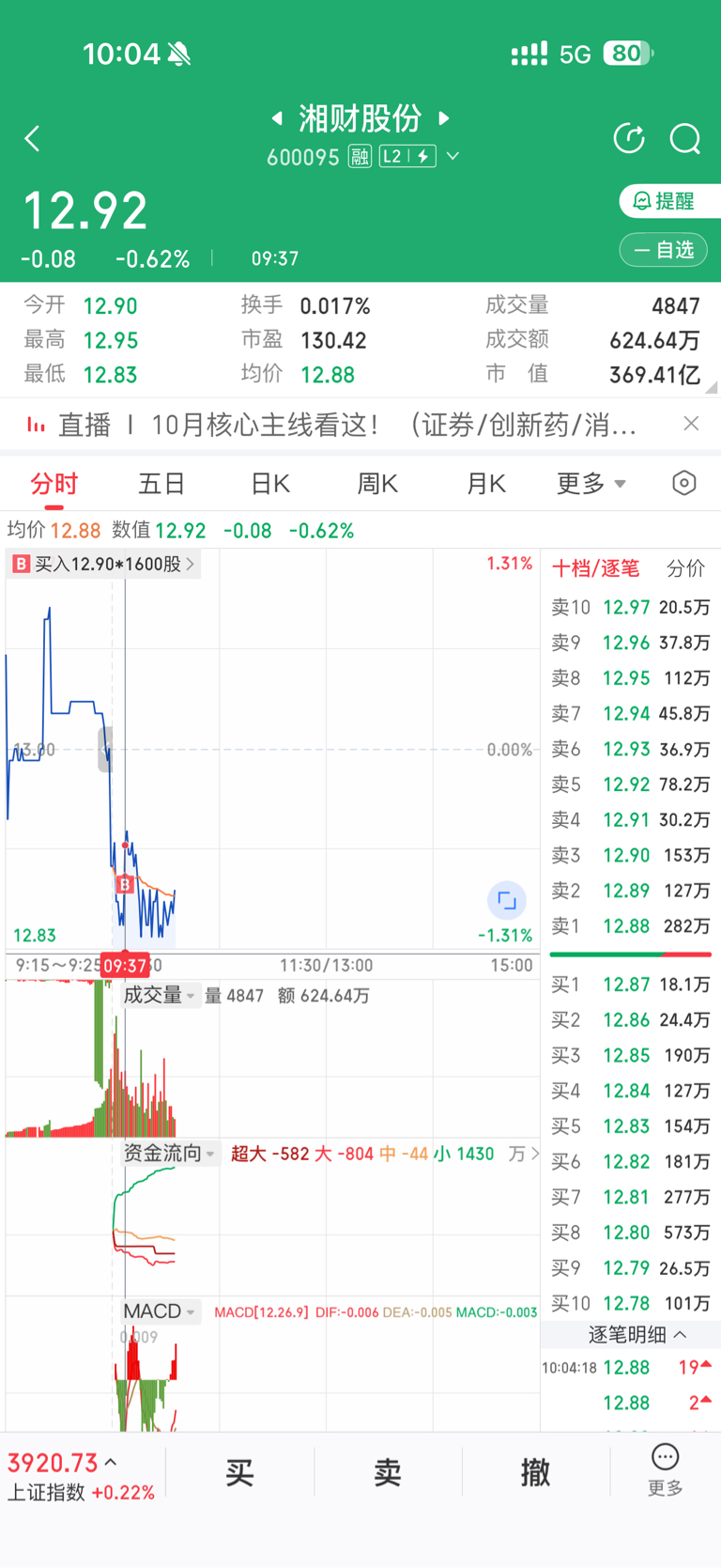 $湘财股份(SH600095)$ 今天给机会吗?我又加了点