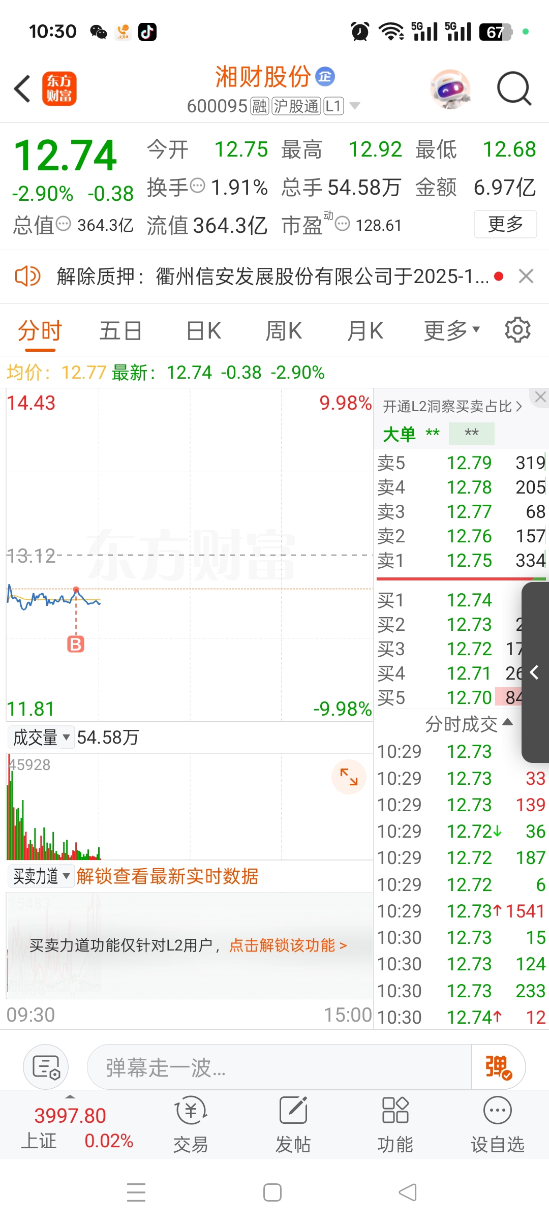 $湘财股份(SH600095)$ 主力就差我这点吗我一进开就泄了