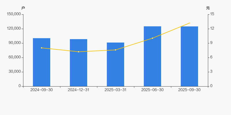 2024年9月30日至今,公司股东户数显著增长,区间涨幅为24.50%。2024年9月30日至2025年9月30日区间股价上涨64.54%。
